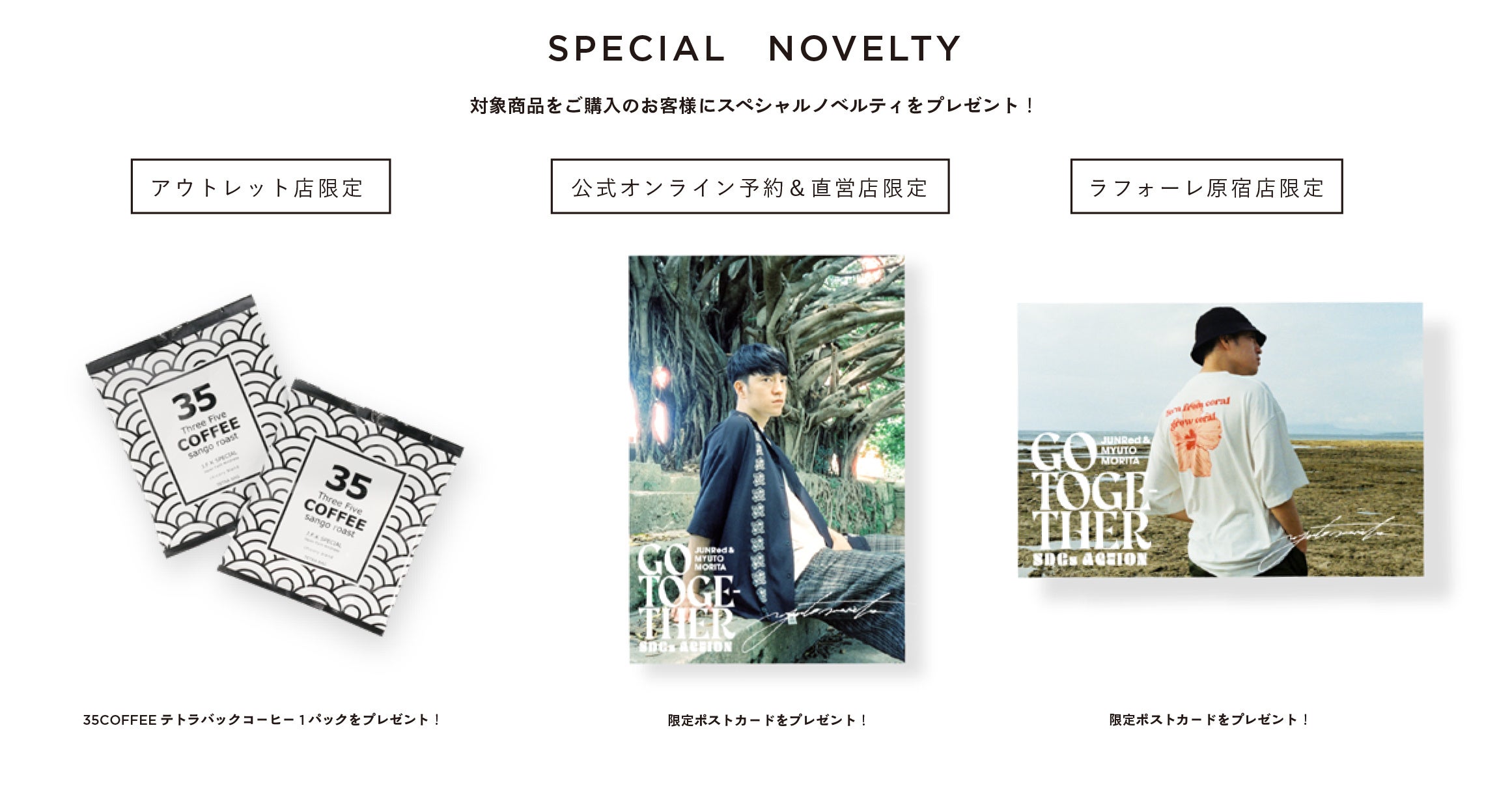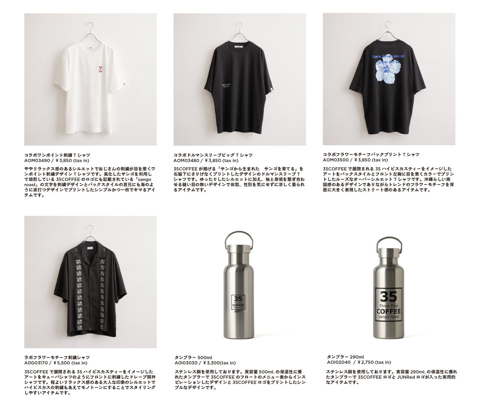 第3弾となる今回は、沖縄で風化したサンゴで焙煎したコーヒーを販売する『35COFFEE』とのコラボレーション。沖縄をイメージしたデザインのTシャツ3 型、シャツ1型、タンブラー2型を発売します。対象アイテムをお買い上げいただいた方には、先着で各店スペシャルノベルティをご用意。コラボレーションアイテム売上の一部をベビーサンゴの移植活動へ活用します。実際に沖縄の35COFFEEの店舗に訪れ、サンゴの苗付けを体験した様子などの動画も6月29日(木) に公開予定です。