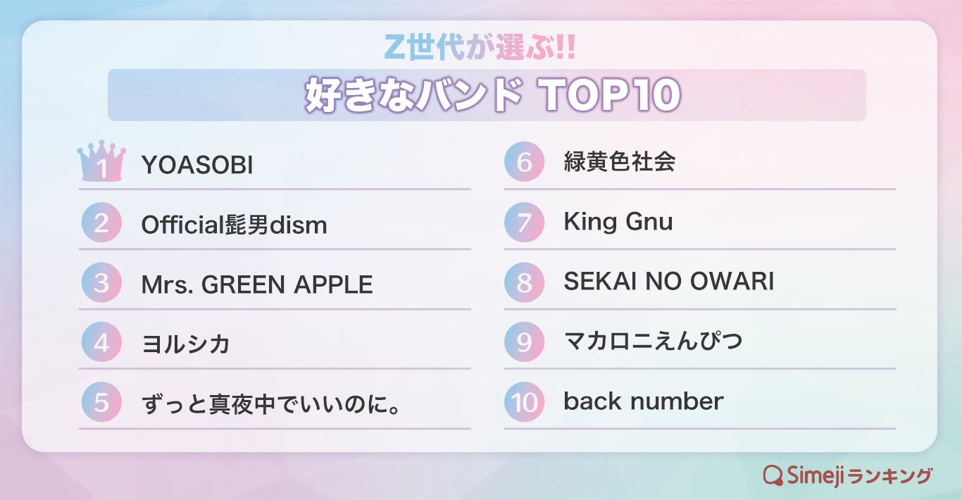 参考:【Simejiランキング】Z世代が選ぶ「好きなバンド」TOP10(2021年配信)