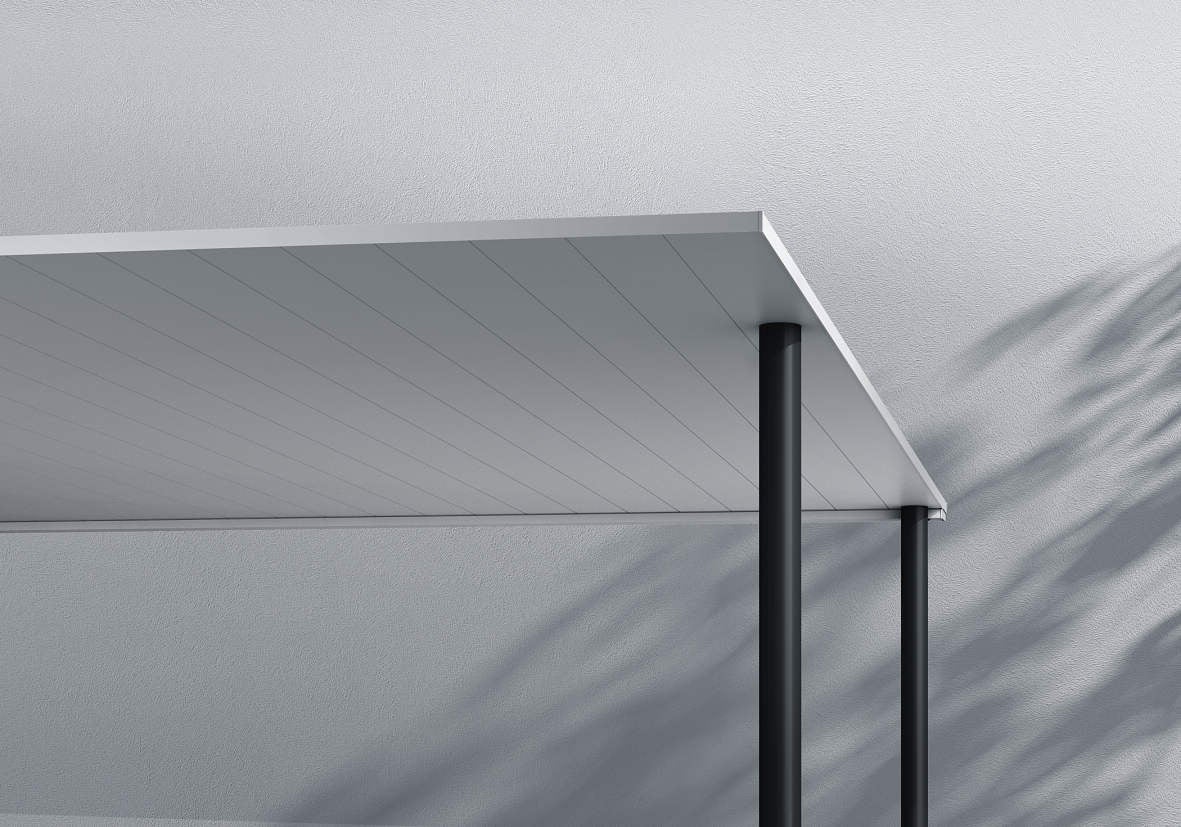 あらかじめ止水材を部材に取り付けることで現場でのシーリング箇所をゼロにしました。施工者の負担を軽減しながら品質を安定化させて、長年にわたり商品を使い続けられます。また屋根材と屋根枠の接合部などのディテールについても性能とデザインのバランスを追求しました。屋根枠は四周の厚さを5mmに統一。端部キャップも最小寸法にして止水材の存在を感じさせないデザインを実現しました。