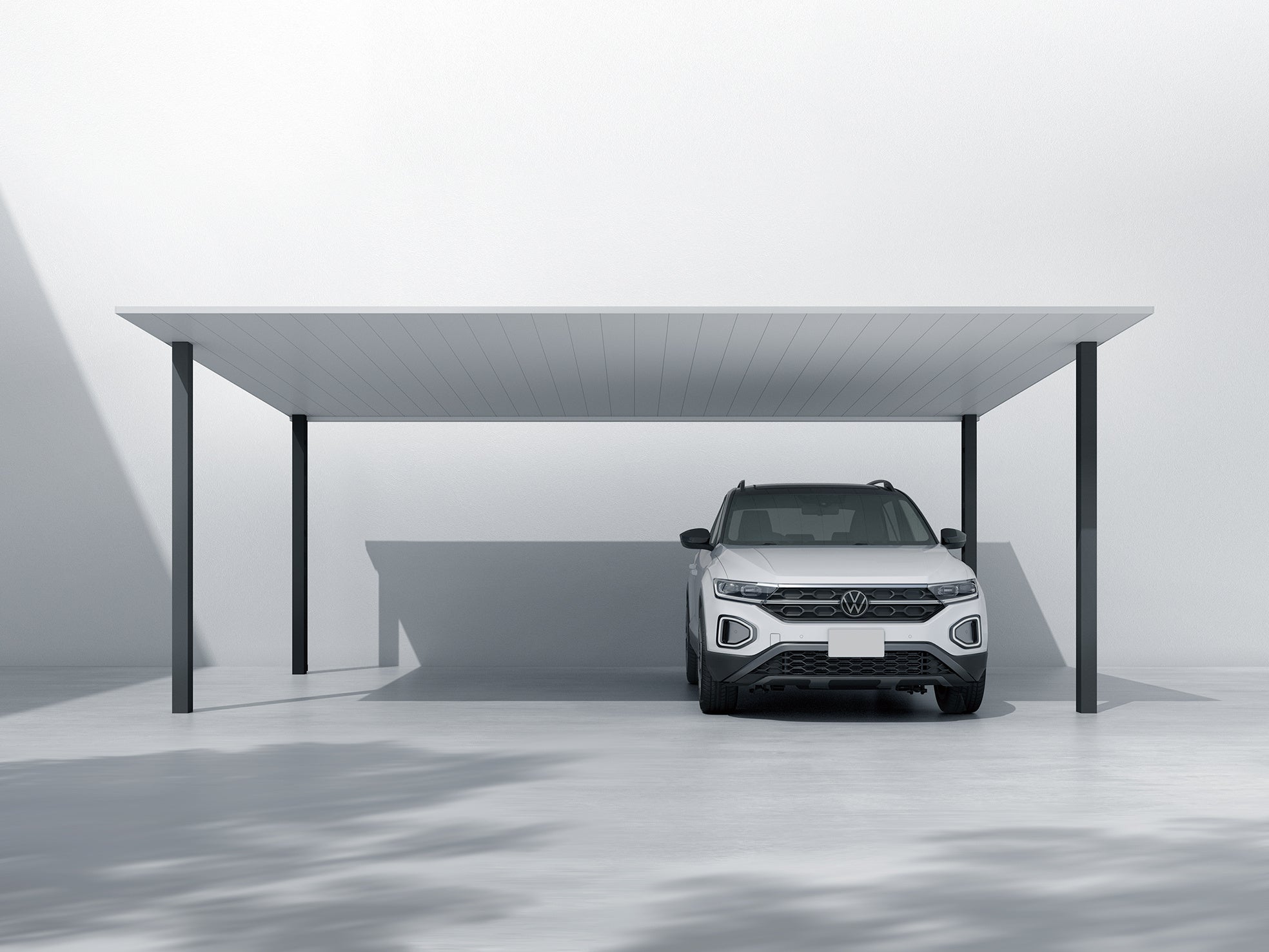 カーポートはあくまでも住宅の付属設備であり、それが新築時の建物の一部であれ、後からの増設であれ、実用的な必需品となることはあっても、建築学的に望まれることはほとんどない。特に後者の場合、現場でのオーダーメイド施工よりも、適応性のあるプレハブ式製品を使う方が合理的な選択である。工場生産により精密な仕上がりが実現されている。さらにこのデザインは(特にこのカーポートの場合)、形態を可能な限りスリムで薄くエレガントにするというたった一つのことを目指している。そのため、隣接する建築物の景観にそっと寄り添う。視覚的にほとんど消えてしまうように設計されているが、結果として力強さと美しさを実現している。