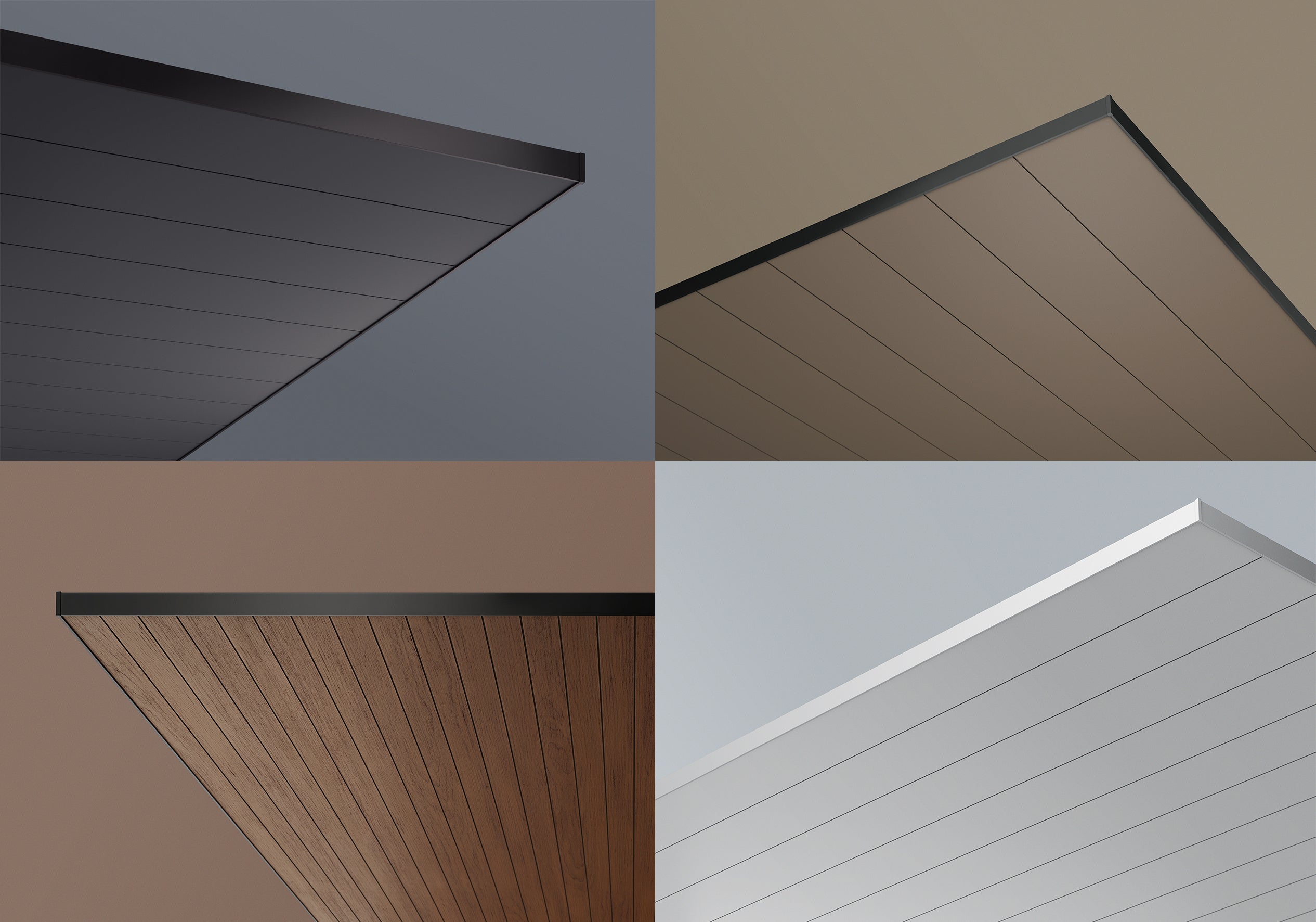 光沢を抑えたグレイ色やスリムな板幅の木調色、均一な表面になるようブラスト加工を施してきめ細かく落ち着いた印象のアルミ色など、シンプルなデザインだからこそ住まいやライフスタイルに合わせたカラーバリエーションと落ち着いた質感にこだわりました。