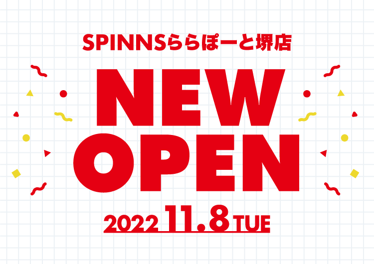■SPINNSららぽーと堺店大阪府堺市美原区の大型商業施設『ららぽーと堺』にてSPINNSららぽーと堺店がOPENします。