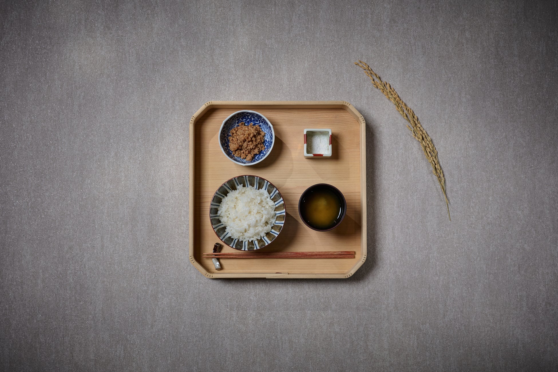 合鴨農法で育てたお米をふっくらと炊き上げました。粒立ちがよくつややかで、お米本来のやさしい甘みが際立ちます。合わせるのは、役目を終えた合鴨をそぼろに仕立てた一品。稲を育てた合鴨の恵みを、最後まで無駄なくいただく「いのちの循環」の物語を感じていただける組み合わせです。(米、合鴨)