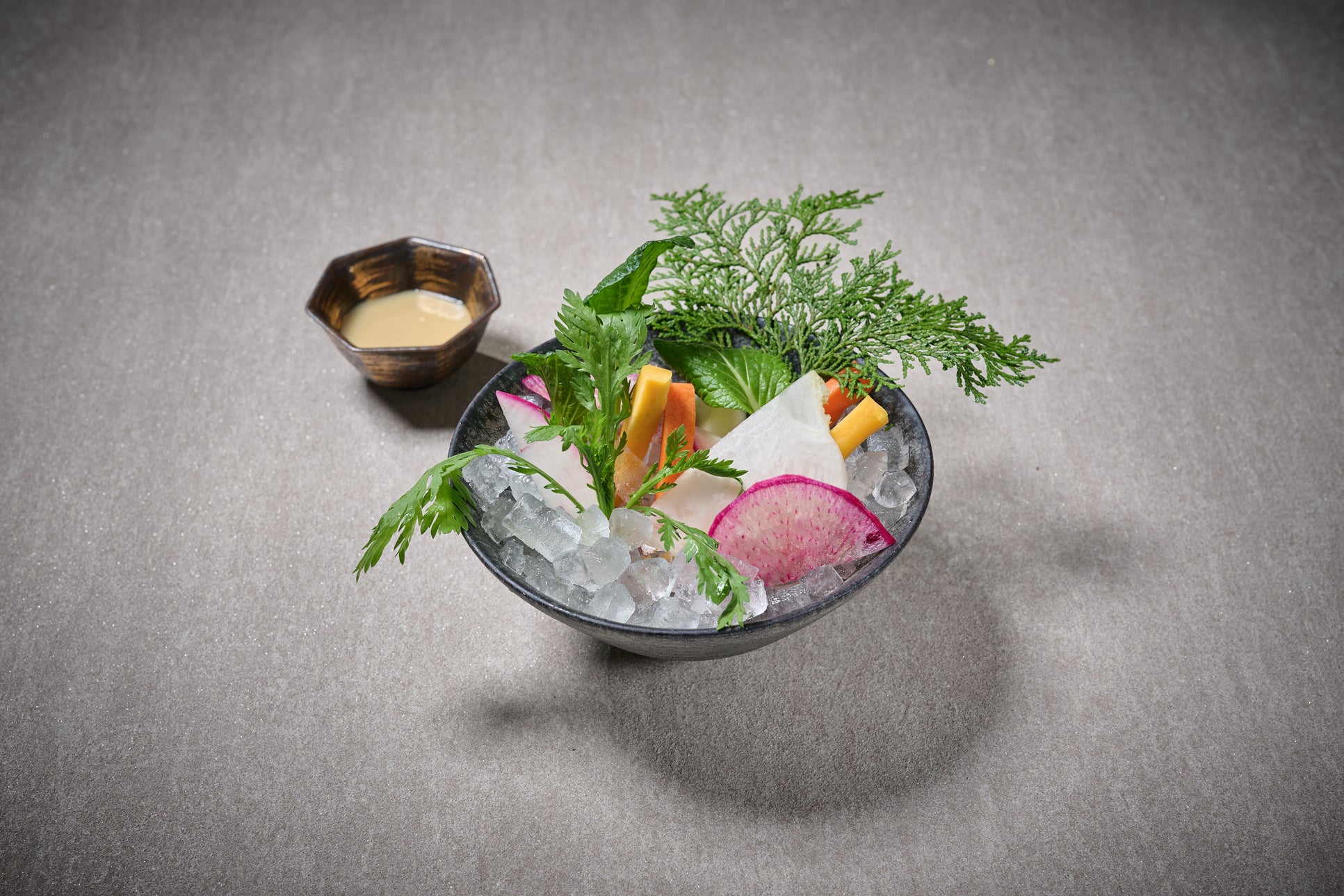 野菜のみずみずしさを味わうバーニャカウダ。ソースには酒粕と西京味噌を使用し、野菜の甘さをより引き立てる“熟成のコク”を加えました。上品な香りとともに、ふくよかで奥行きのある味わいをご堪能ください。