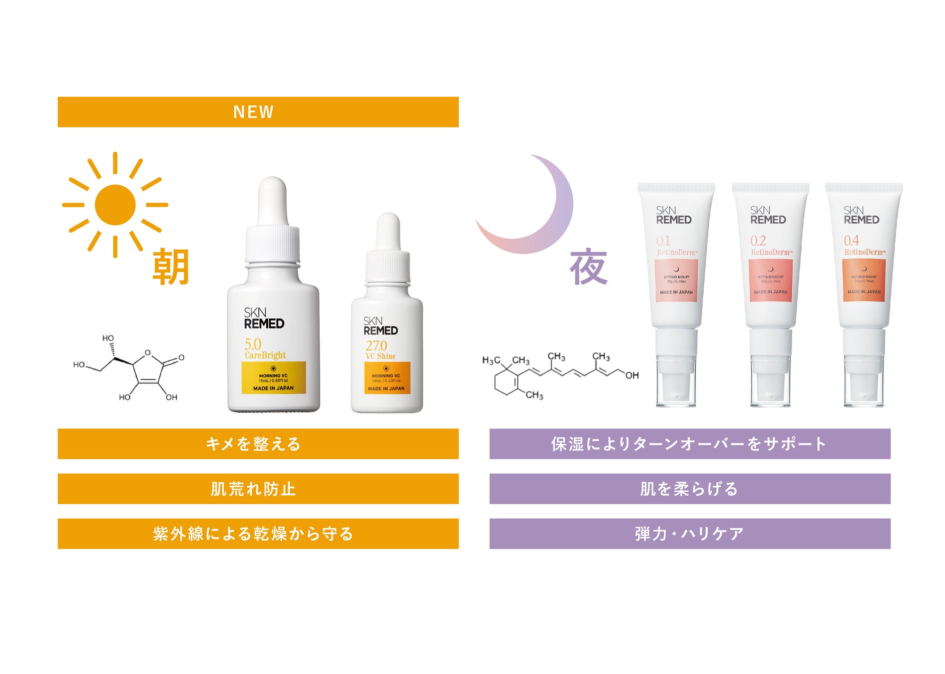 肌悩みに合わせて選べる、SKN REMEDの「朝C夜レチ」