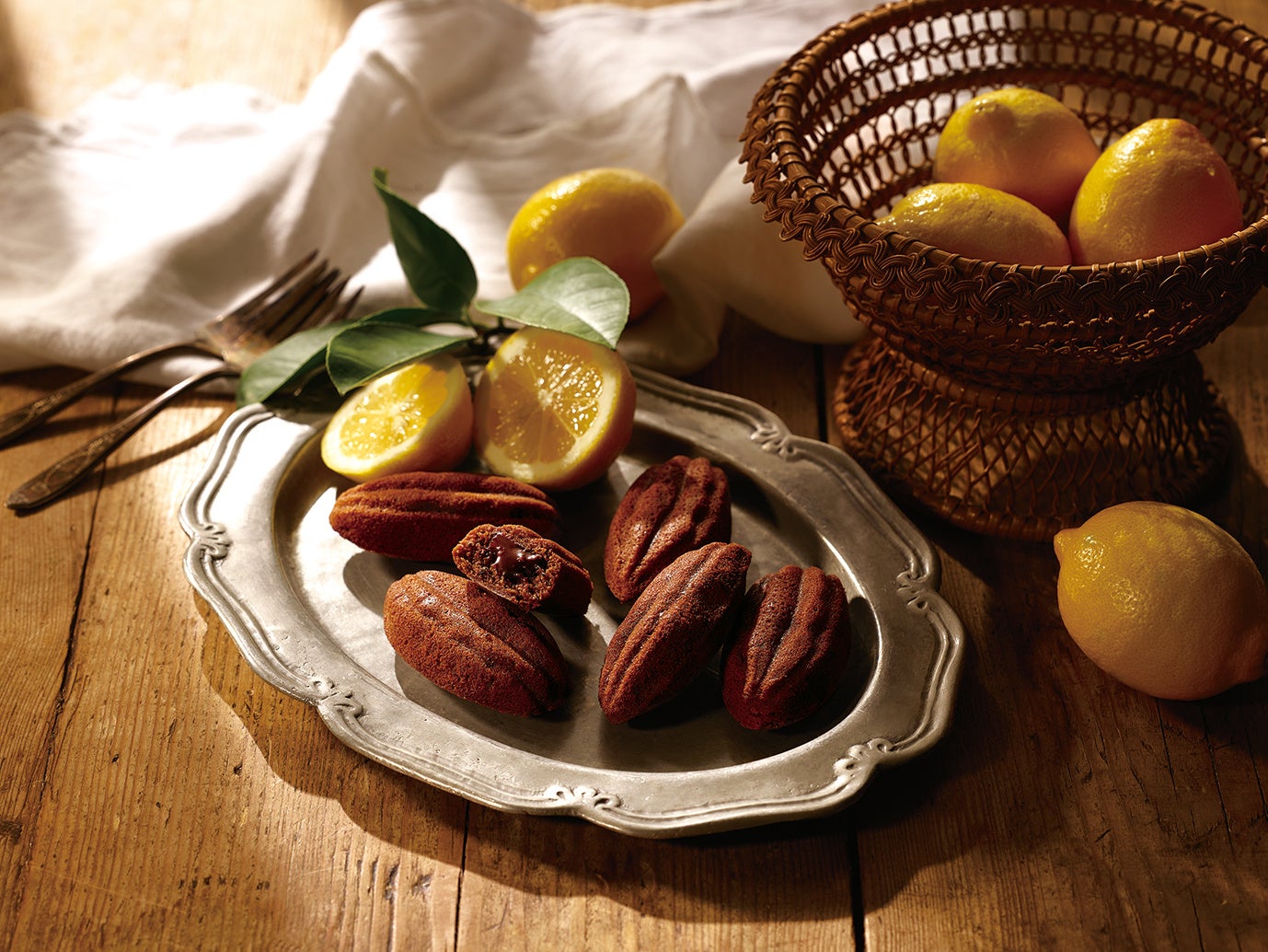 こだわりの3種類のチョコレートを使用した生地にレモンピールを練り込み、特製焼きチョコを詰めてしっとりと焼き上げたマドレーヌです。
