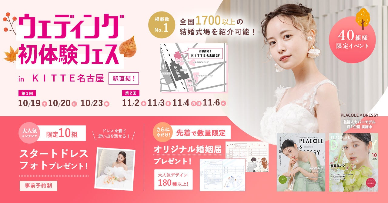 【10/19(土)-20(日) 23(水)限定】<名古屋駅直結>豪華特典付き!ウェディング初体験フェス開催決定 in DRESSYCAFE