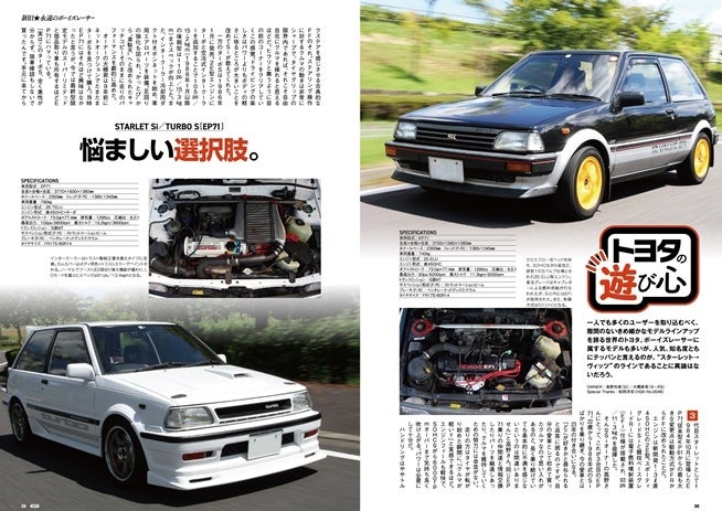 特集は日産マーチからスタート。先日、40年の歴史に終止符が打たれることがアナウンスされたが、歴代モデルでワンメイクレースも開催されるなど、走りのイメージが強い1台。中でも初代K10にラインアップされた競技ベース車両のマーチRや、そのロードゴーイングバージョン、スーパーターボ、またK11トミーカイラm13やK12オーテック12SRやインパルマーチ、K13オーテックA30などを詳しく紹介する。