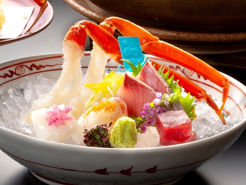 かがり吉祥亭【加能ガニ】青いタグが美味しさの証!おひとり様たっぷり1杯♪ お造り、宝楽蒸し、天ぷら~ 香箱蟹ご飯、黒毛和牛しゃぶしゃぶ