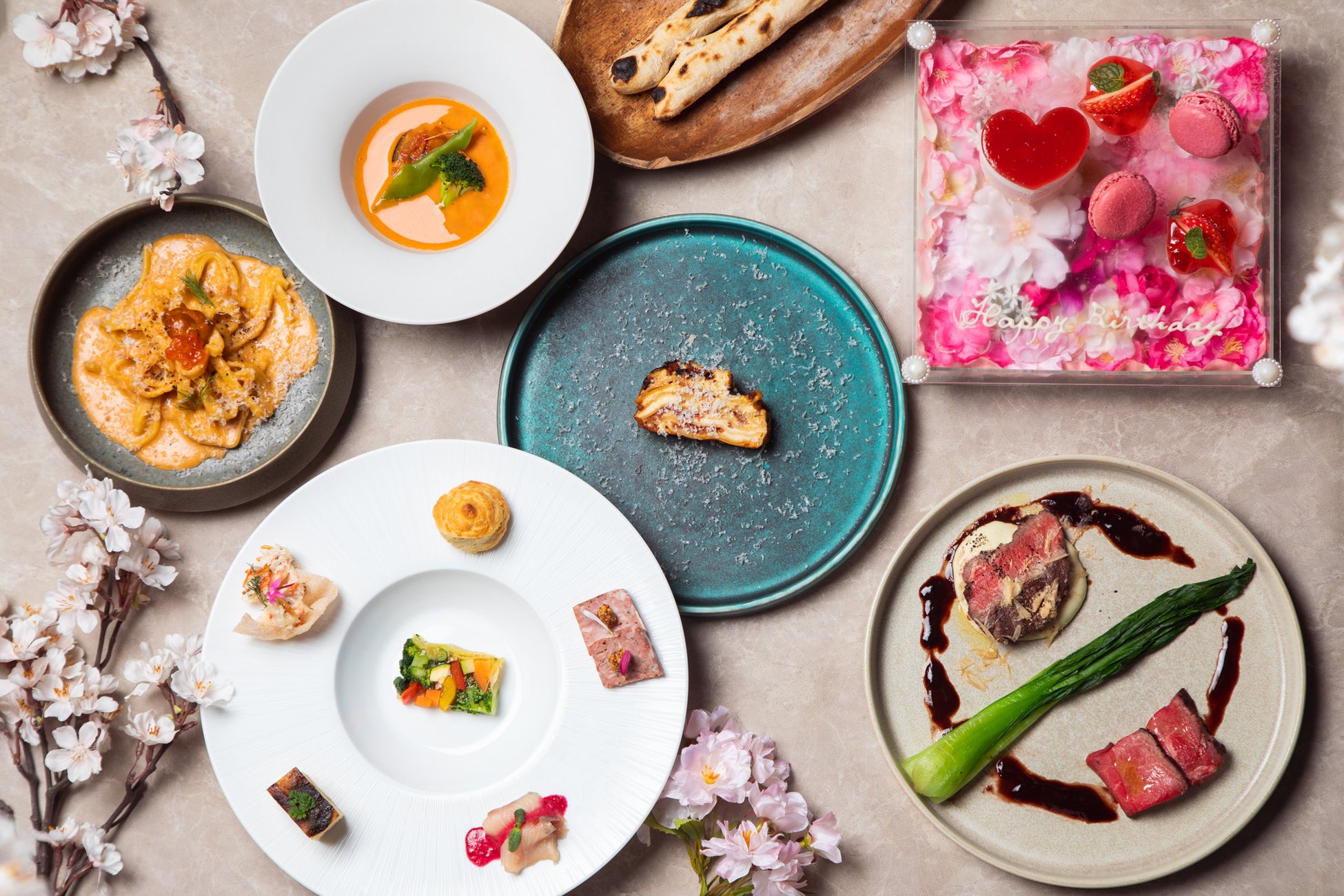 《桜×夜景》東京初2名専用レストラン『渋谷ブルーバード』で、夜桜を眺めながらのディナーデート。色鮮やかな特製アミューズ6種から始まる贅沢ディナーコースがリニューアル!!