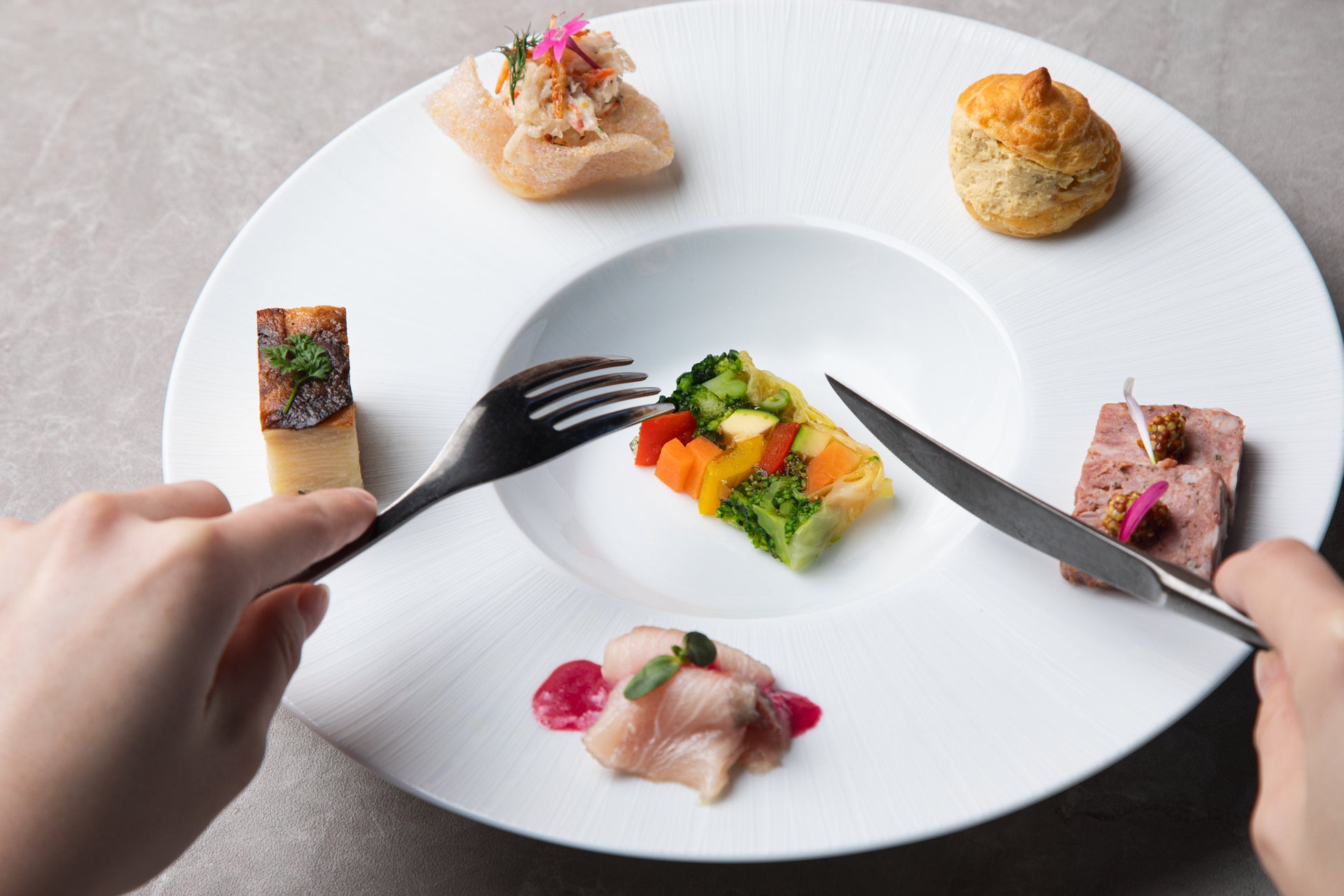 6種の特製アミューズ盛り合わせから始まる贅沢なディナーコースが、3月3日よりリニューアルして登場!