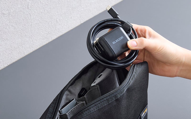 “GaN II”を採用することで小型化を実現した、USB Power Delivery(45W)対応のAC充電器です。タブレットやスマートフォン、ゲーム機の充電だけでなく、重くて煩雑になりがちなノートパソコン用ACアダプターの代わりに気軽に持ち運ぶことができます。