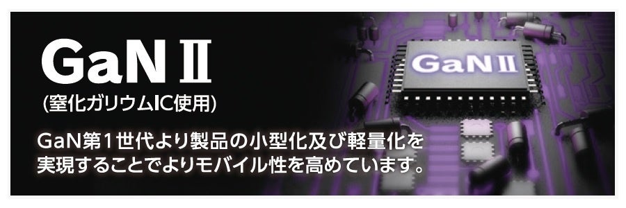 GaN II (窒化ガリウムIC)を採用し、持ち運びに便利なコンパクトサイズ!