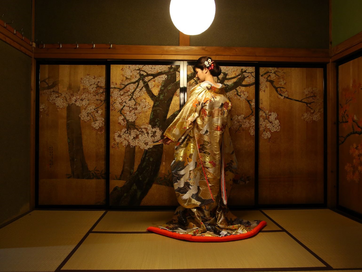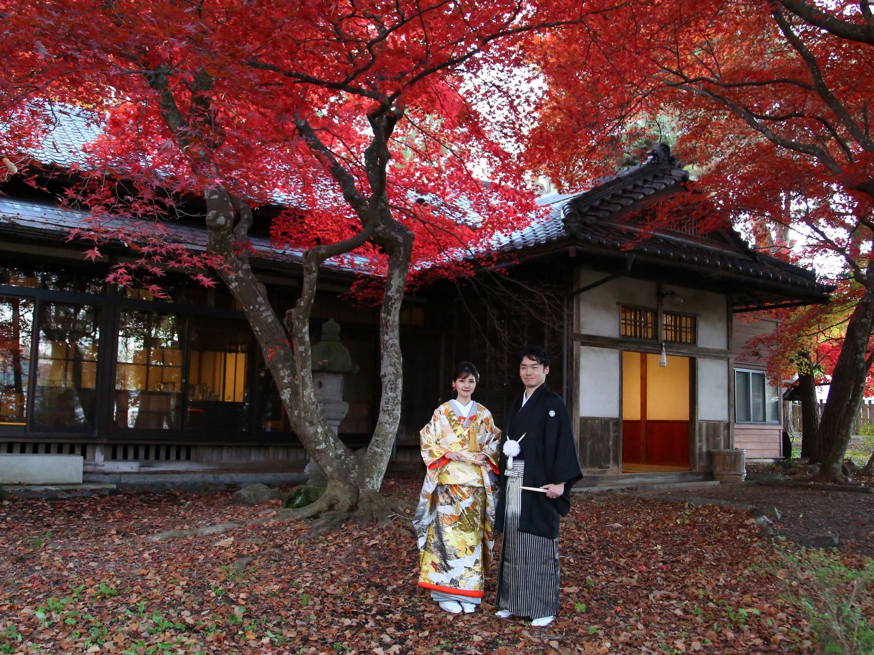 春は美しい新緑の輝き、秋は赤く染まる紅葉で和装フォトがよく映えます。