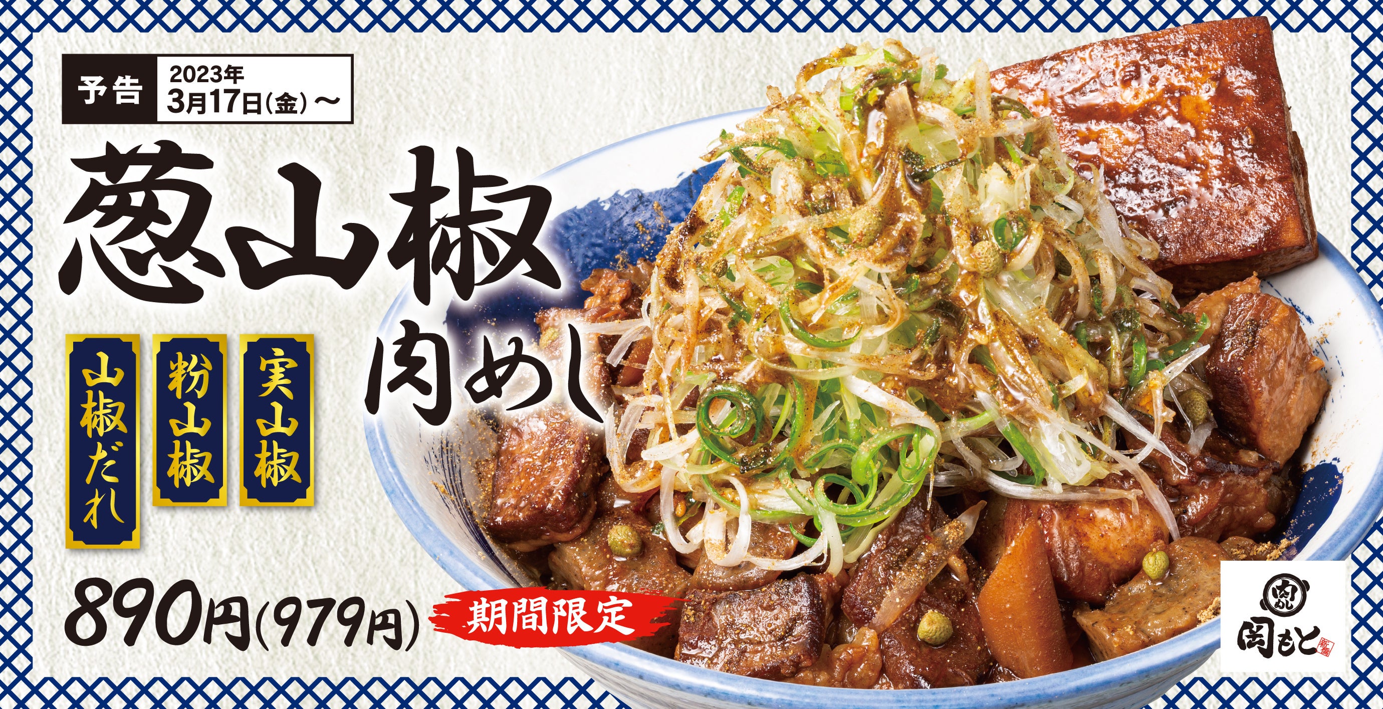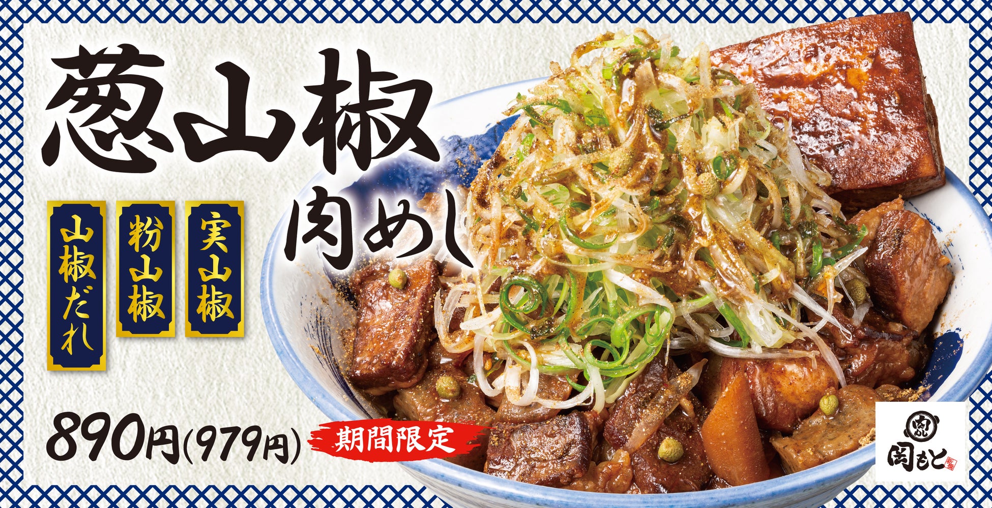 “頑固おやじが作る市場のぶっかけ飯”がコンセプトの「肉めし岡もと」に、山椒をきかせた期間限定メニュー「葱山椒肉めし」 が新登場。