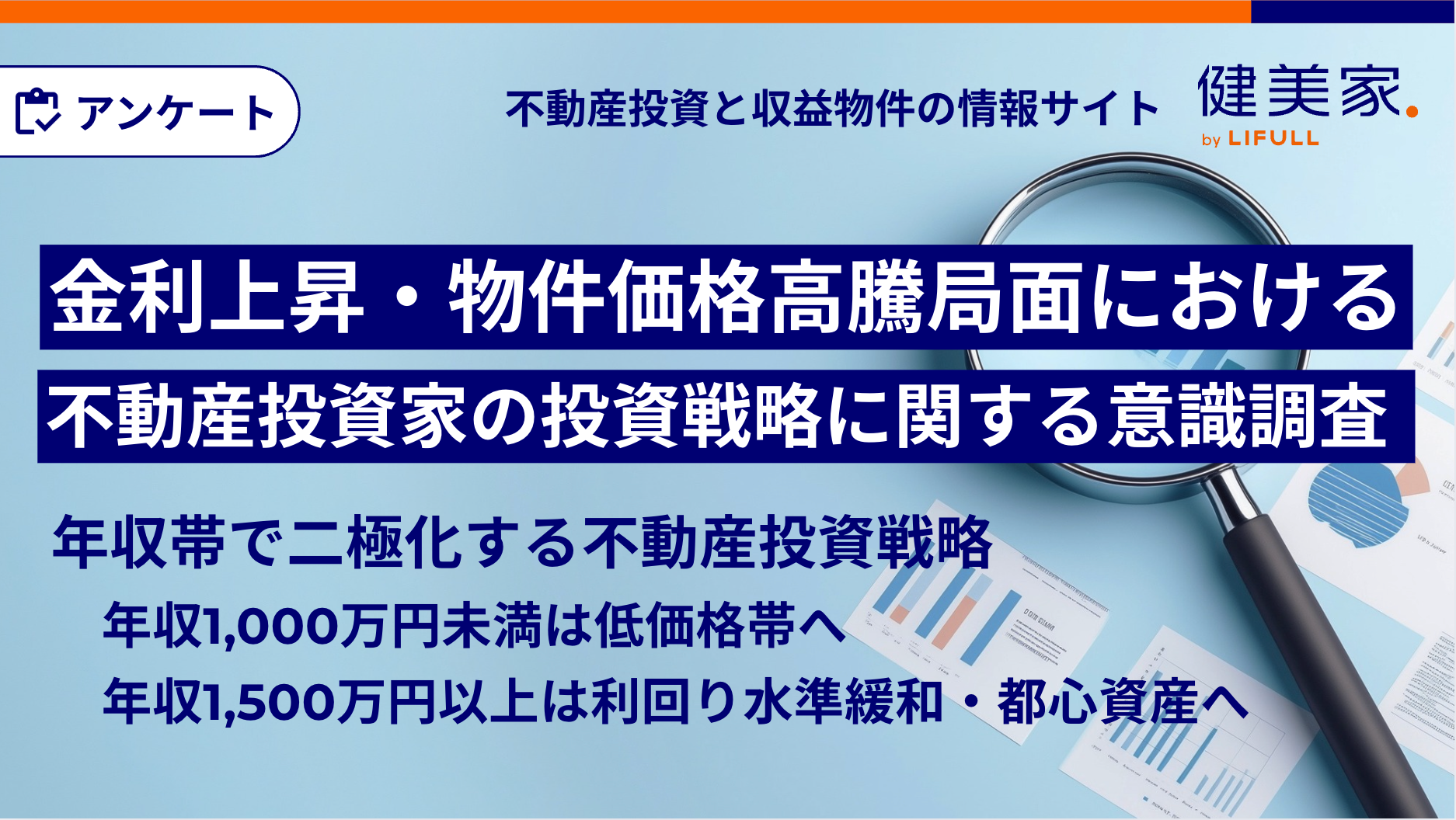 金利上昇・物件価格高騰局面における『不動産投資家の投資戦略に関する意識調査』を健美家が実施