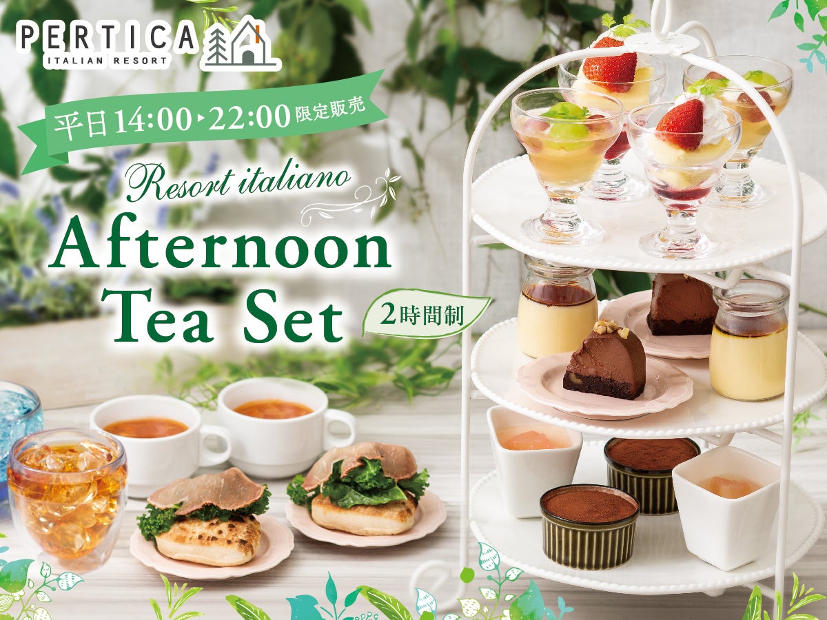 【非日常感あふれるリゾート空間で味わう極上タイム♪】五感をくすぐる体験型イタリアン『イタリアン リゾート ペルティカ』にてインペリアルドリンクバーが付いた『アフタヌーンティーセット』が登場!
