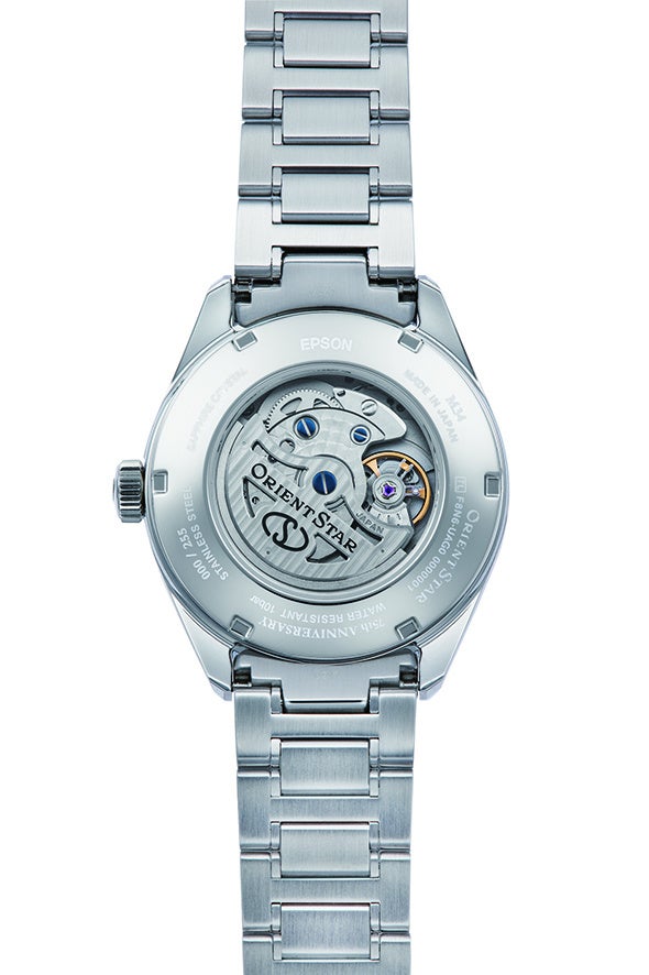 メテオライト文字板と、シリコン製がんぎ車を搭載する先進の自社製ムーブメントを併せ持ったこの75周年記念モデルの『M34 F8 デイト』は、国内公式オンラインストア20本限定で、裏ぶたにOrient Star 75th Anniversaryとシリアルナンバーが刻まれています。希少な素材や技術に関心が高く、価値ある逸品を探し求める愛好家や収集家にとっては、まさに見逃せない時計です。