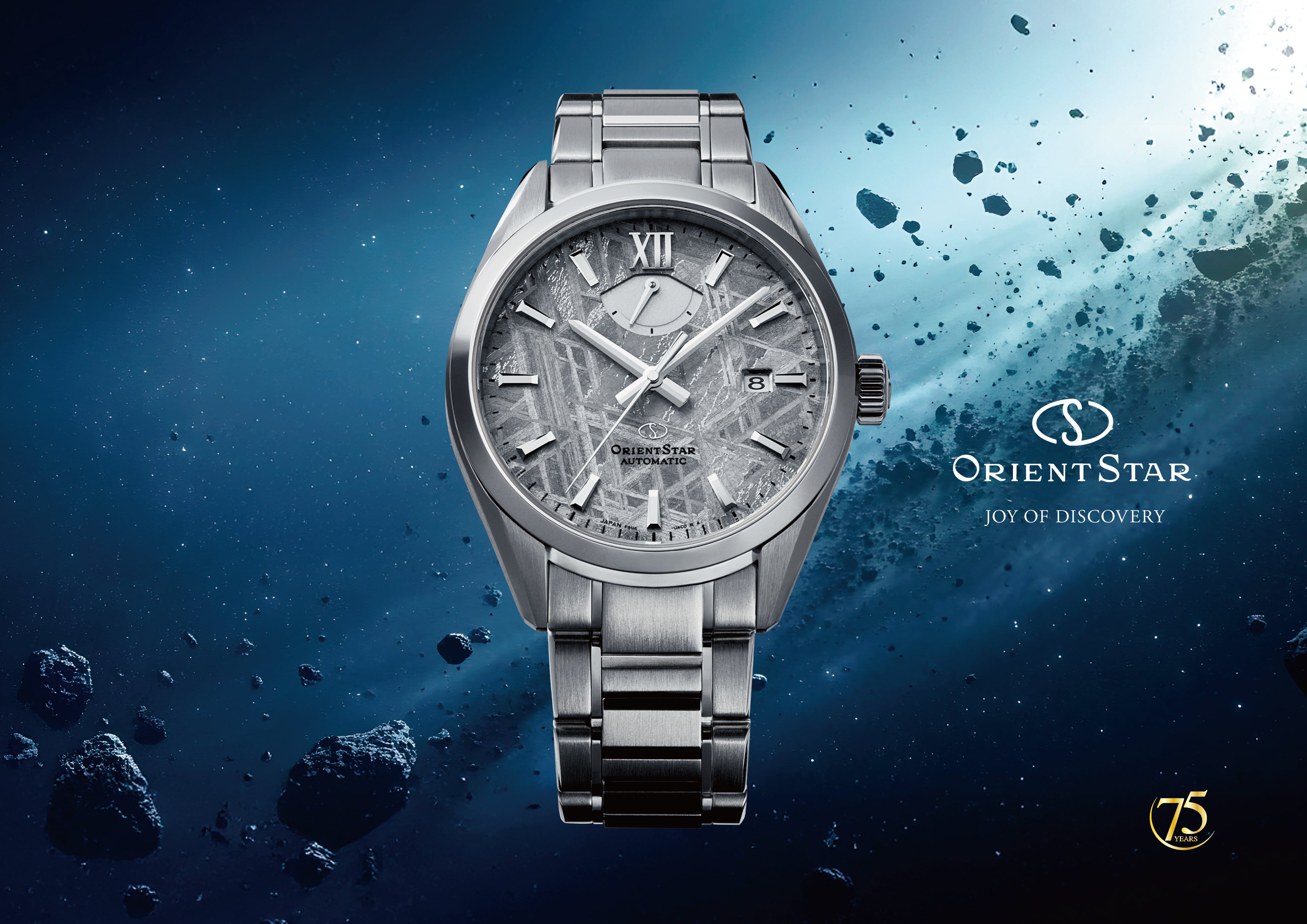 ウオッチブランド「Orient Star(以下、オリエントスター)」は、コンテンポラリーコレクションM34からオリエントスター75周年を記念する『M34 F8 デイト』の世界限定255本(国内20本 公式オンラインストア限定・海外235本)を2026年3月5日に発売します。ペルセウス座流星群をデザインテーマとした本コレクションは、ダイヤルにメテオライト(隕石)を用い、悠久の時を超えて地球にたどり着いた神秘的な素材が宇宙へのロマンや知的探求心を呼び覚まします。