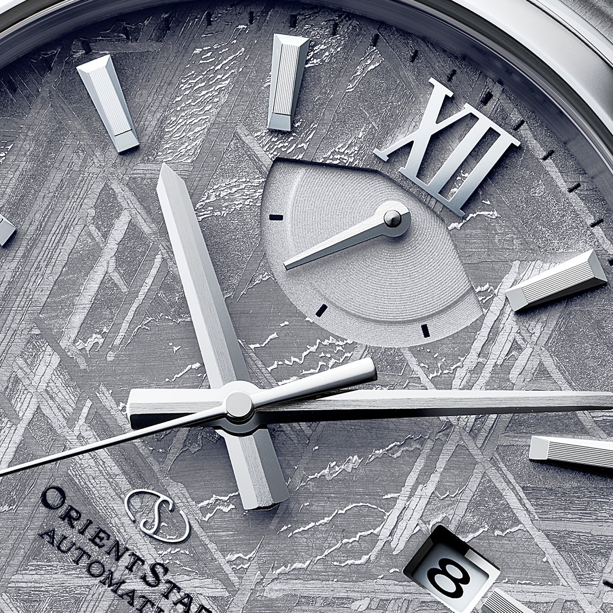 この鉄隕石のもつ美しい結晶構造を保つために、銀色蒸着処理(防錆薄膜コーティング)を施しています。銀色蒸着処理を施したオリエントスターのメテオライト文字板は1点ずつ結晶の模様が異なり、それぞれが唯一無二の個性を持っています。SARコーティング(両面無反射)を施し、99%の透過率を実現した両球面サファイアクリスタルを通じて希少なメテオライト(隕石)を鮮明に鑑賞でき、しかも個々の模様の違いから生まれる特別感は、一般的な量産モデルでは決して味わえません。