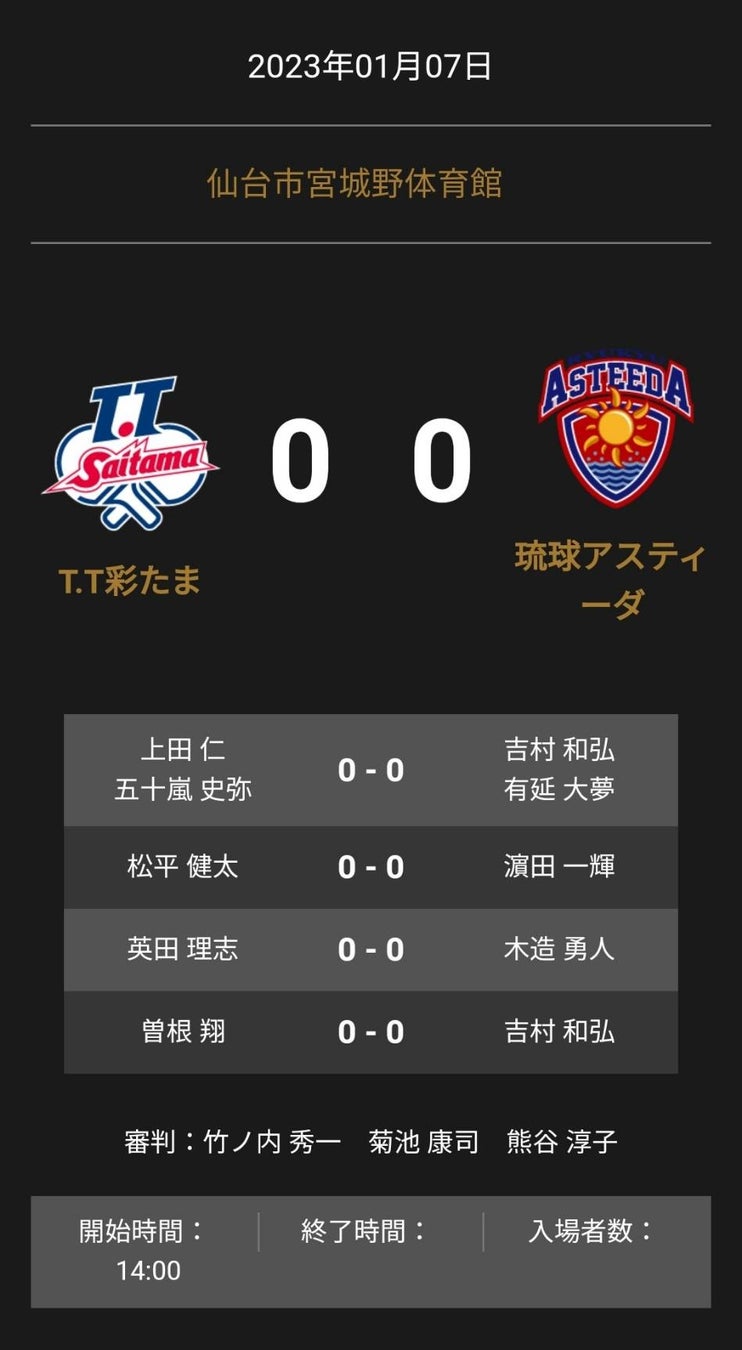 ノジマTリーグ 2022-2023シーズン 公式戦 1月7日 T.T彩たま vs 琉球アスティーダ 対戦オーダー発表