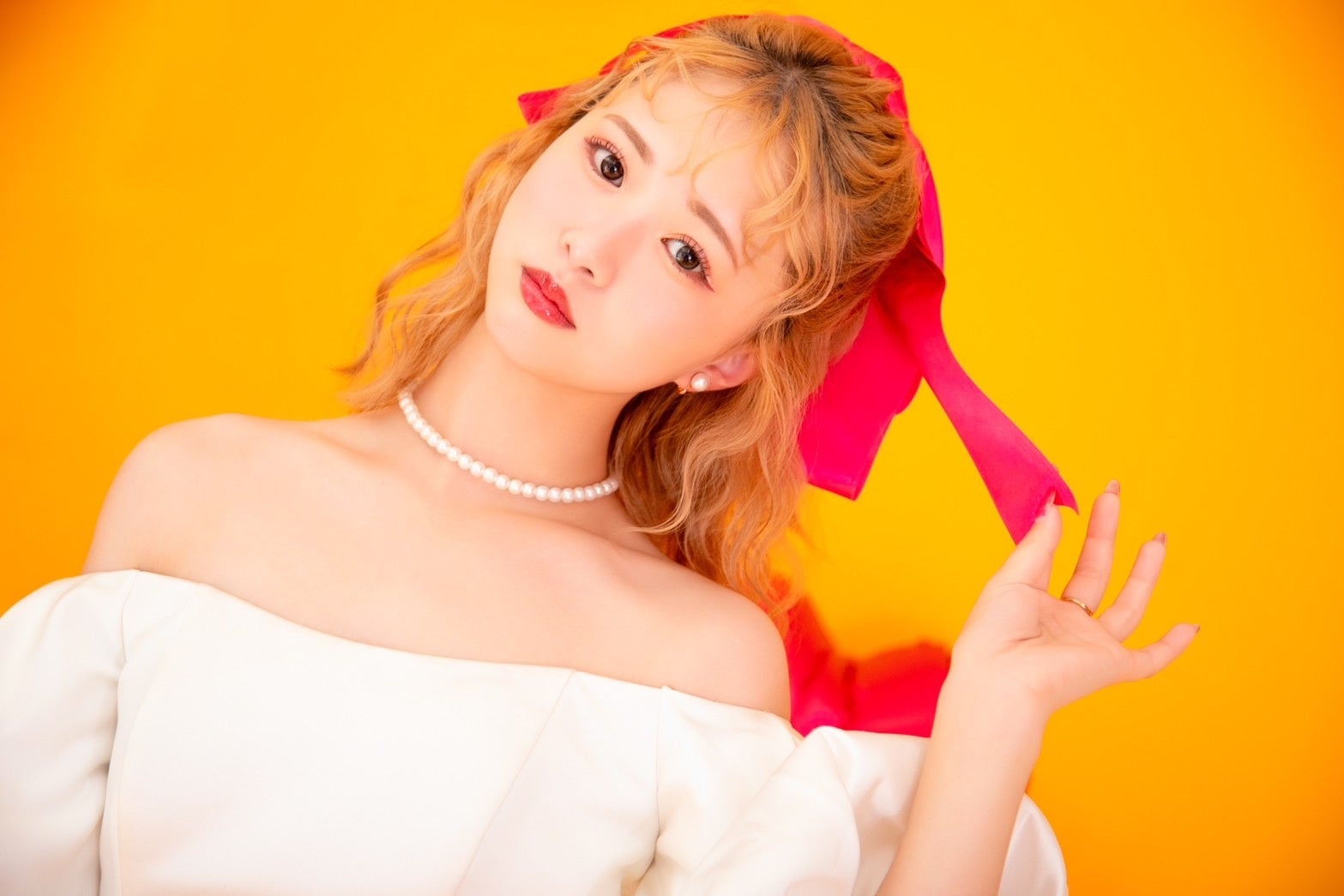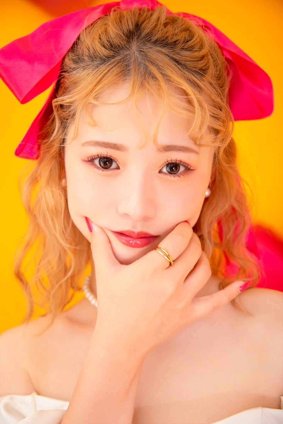ヘアスタイルは海外ガールをイメージさせるパーマセットに高めのハーフアップでポップさ全開に!