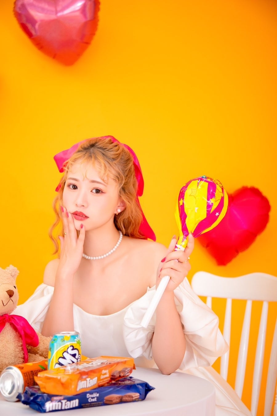 ヘアアクセサリーのリボンとネイル、リップなど、細かいカラーの統一感も可愛いポイント!