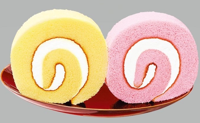 【内容】赤と白のロールケーキの2個入りです。赤い生地には苺の濃縮果汁を配合しています。卵白を配合した軽い食感のしっとり生地が特長です。クリームをたくさん味わえる巻き方に工夫をしました。