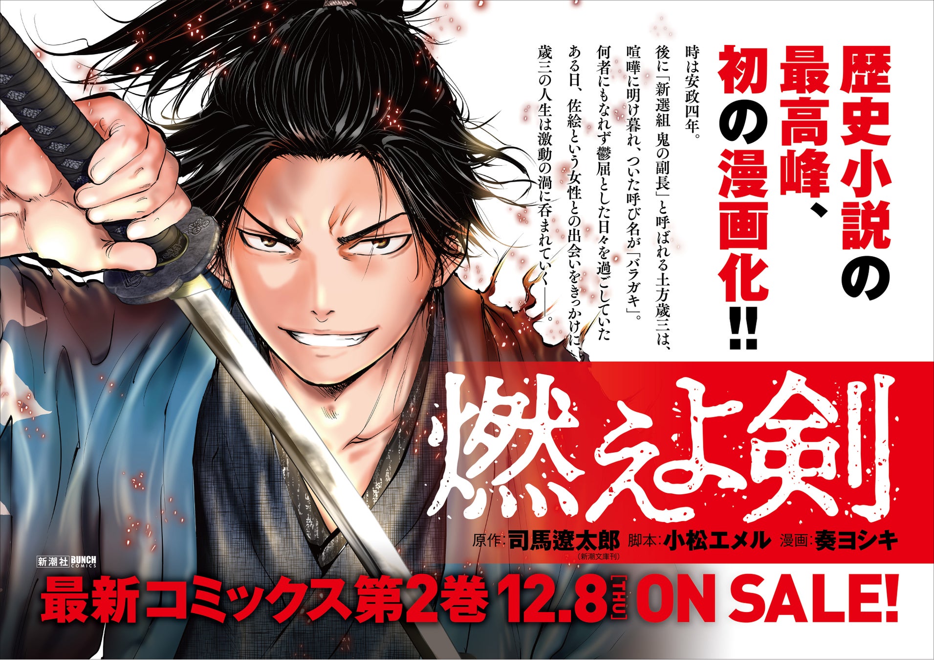 月刊コミックバンチ2021年12月号で連載開始以来、沙村広明をはじめとする歴史漫画・新選組漫画を手掛ける漫画家や、俳優の有澤祥太郎・阪本奨悟、さらには声優の三木眞一郎などから熱い応援が寄せられている、漫画『燃えよ剣』。