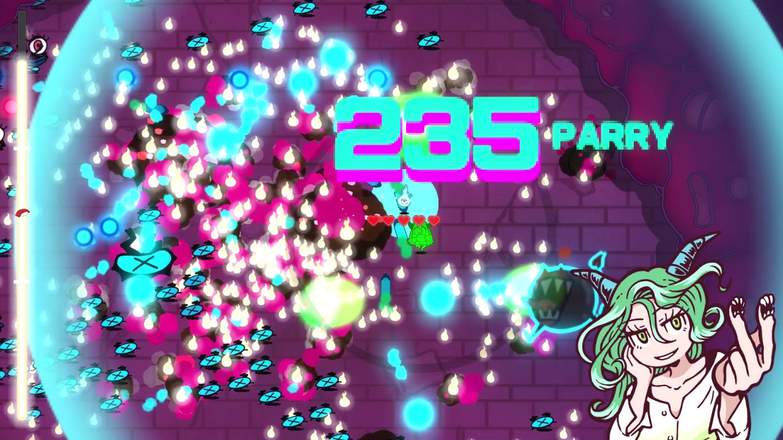悪夢の世界(ナイトメア)に閉じ込められてしまった主人公が、もう一人の自分である「ホンノウちゃん」と協力し、ナイトメアからの脱出を図る見下ろし型アクションゲーム!押し寄せる無数の敵の攻撃をパリィで凌ぎ、ゲージを溜めて敵を一掃!敵を倒すことで手に入る光を集めて、ナイトメアの闇を祓え!簡単操作で爽快アクションが楽しめる、新感覚パリィ&バディアクション!!