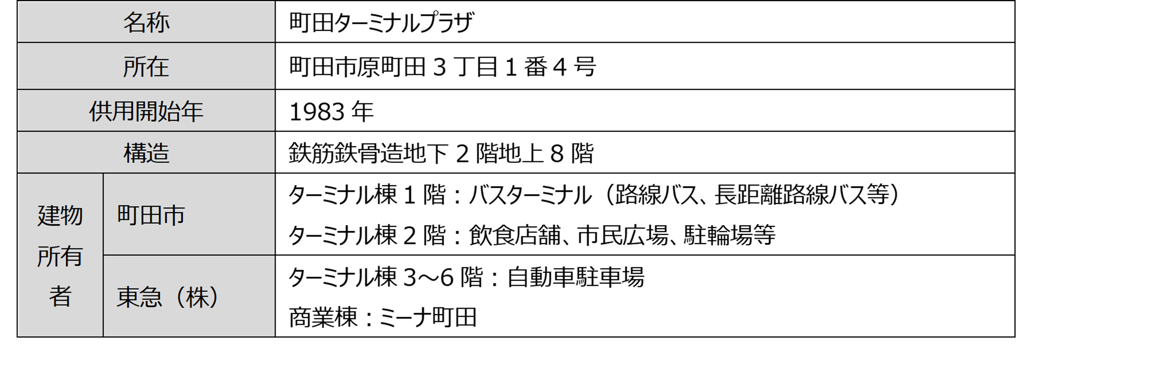 町田ターミナルプラザは、町田市施行の再開発事業と横浜線の複線化に併せた旧原町田駅移転に伴う周辺の斜陽化防止及び回遊性増大のため、町田市と東急電鉄株式会社(現・東急株式会社)が共同で1983年10月に建設しました。