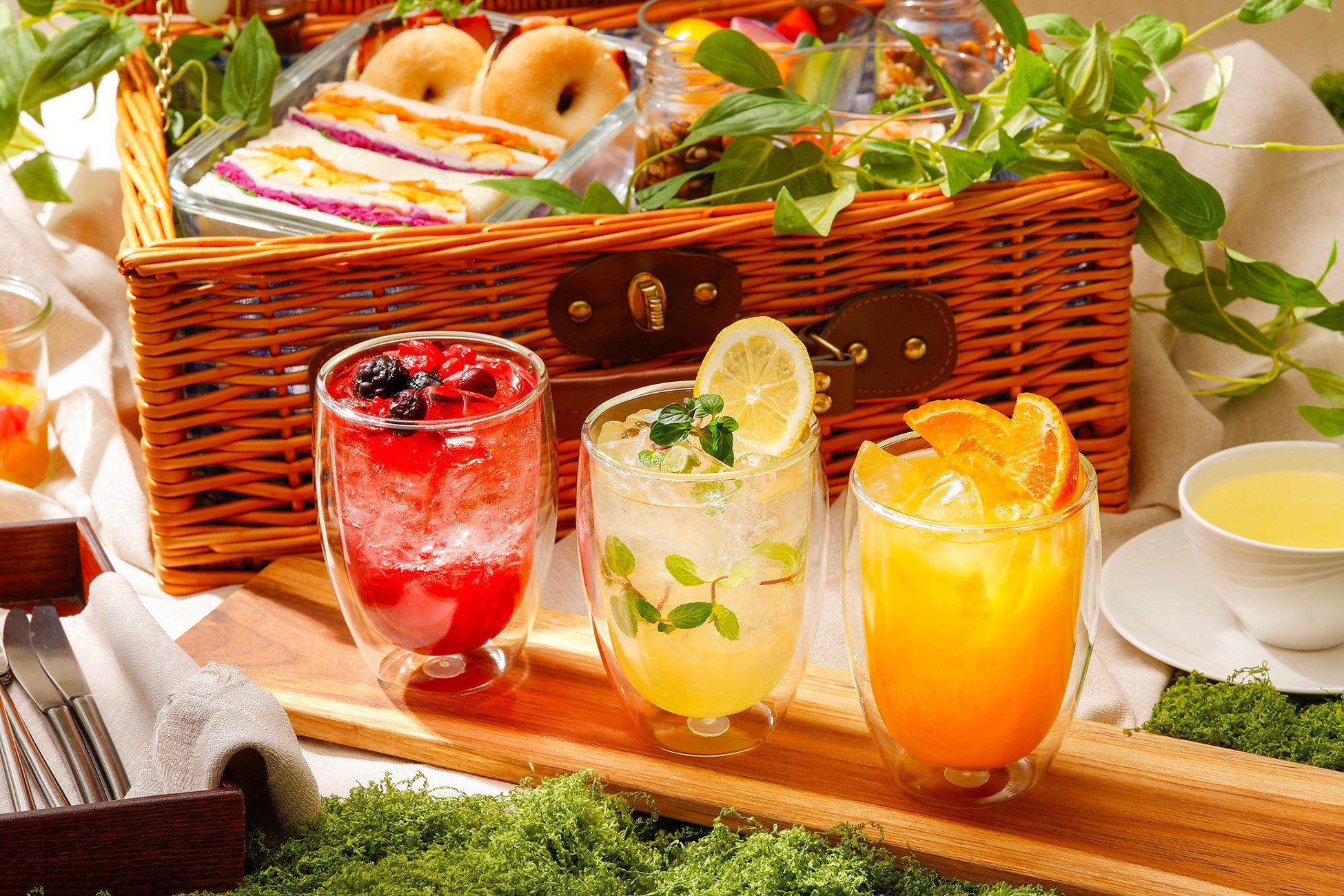 ドリンクは、フルーツが主役のさっぱりとした3種のフルーツエードや、ハーブティーなど6種類よりお好みのものを1杯お選びいただけます。