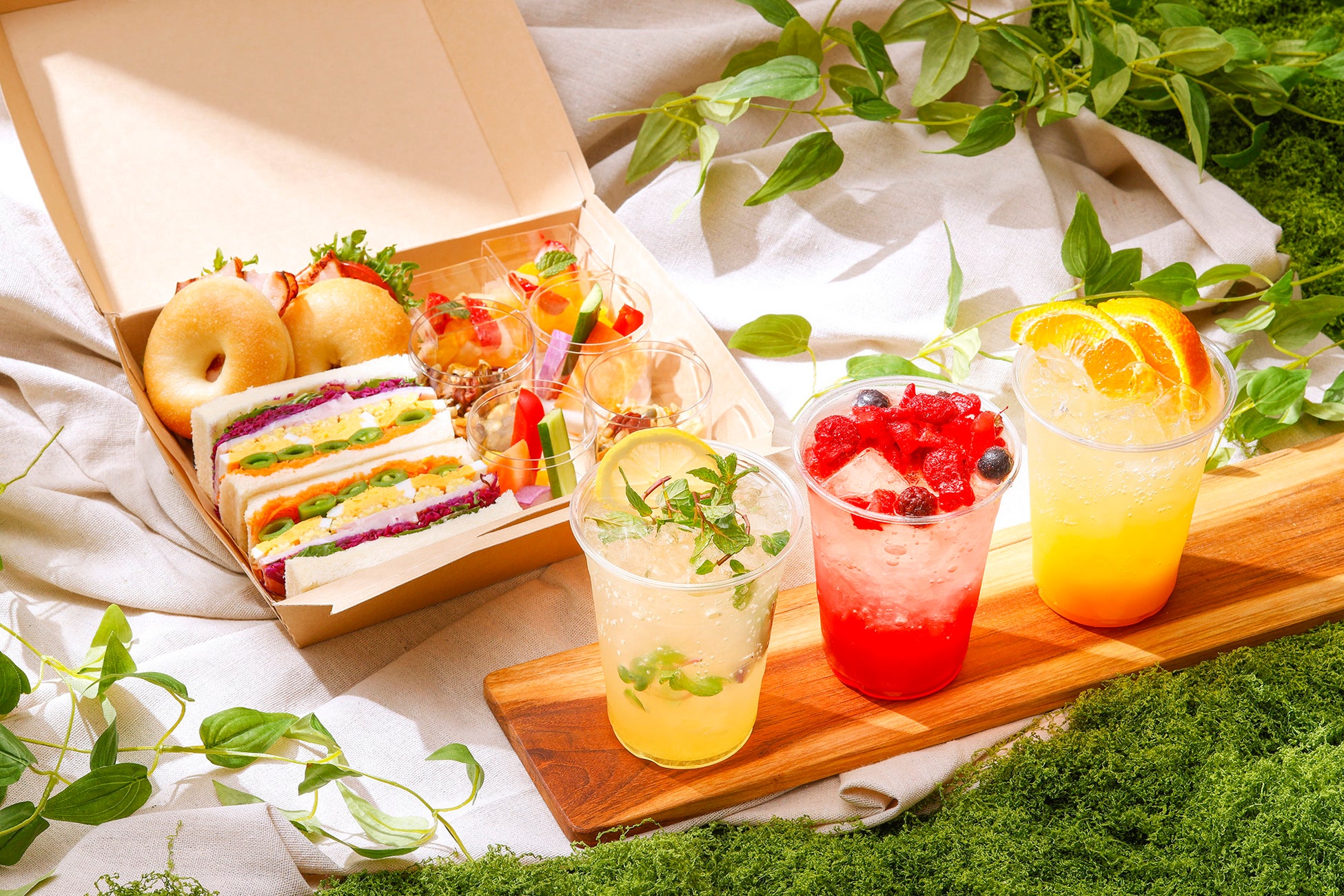 お出かけ先でのピクニックを彩る、ピクニックフード&ドリンクがセットになったテイクアウトも期間限定販売。代々木公園でのピクニック、またはアウトドアランチなどのお集まりの際にもおすすめです。