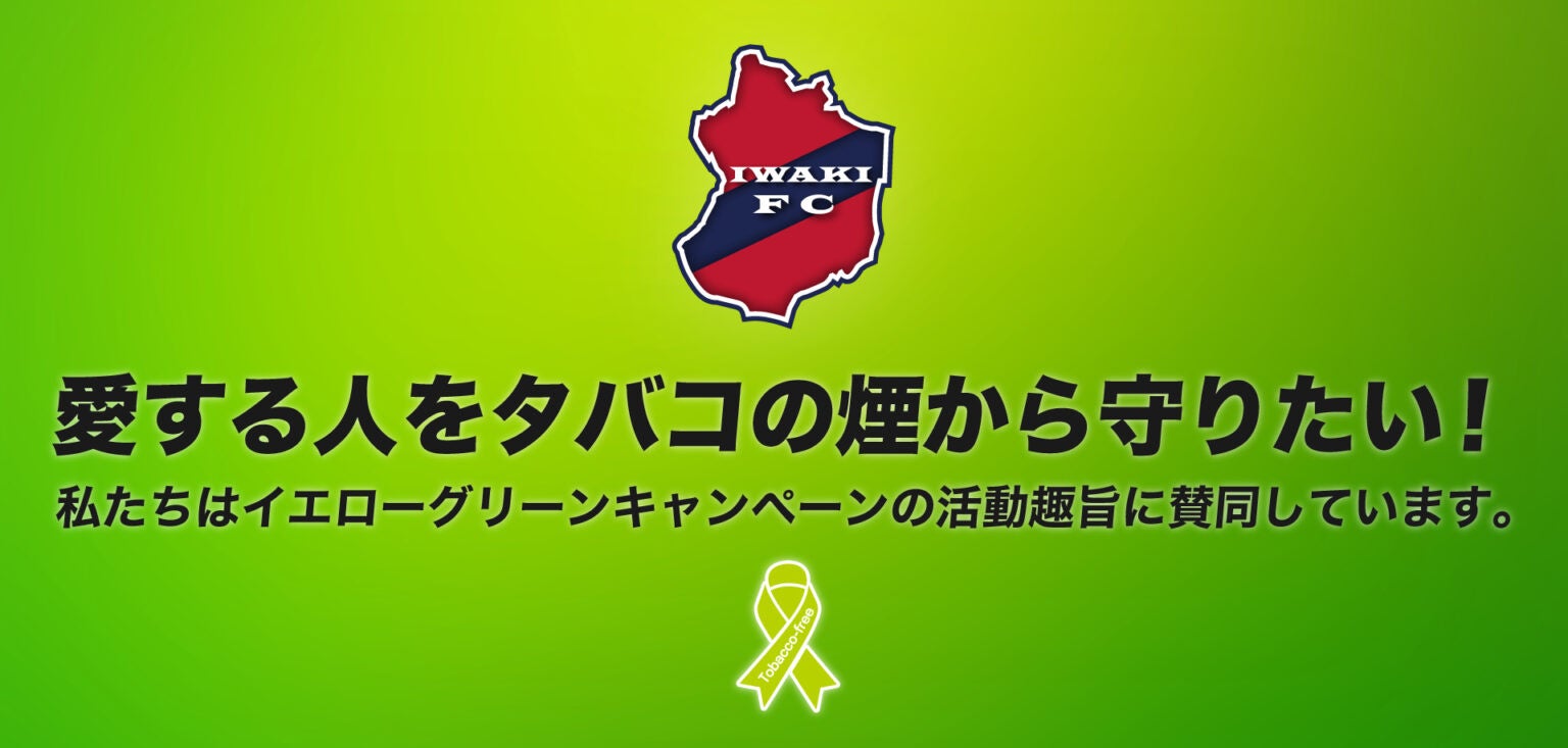【いわきFC】甲府戦を「イエローグリーンスペシャルマッチ〜愛する人をタバコの煙から守りたい〜」として開催