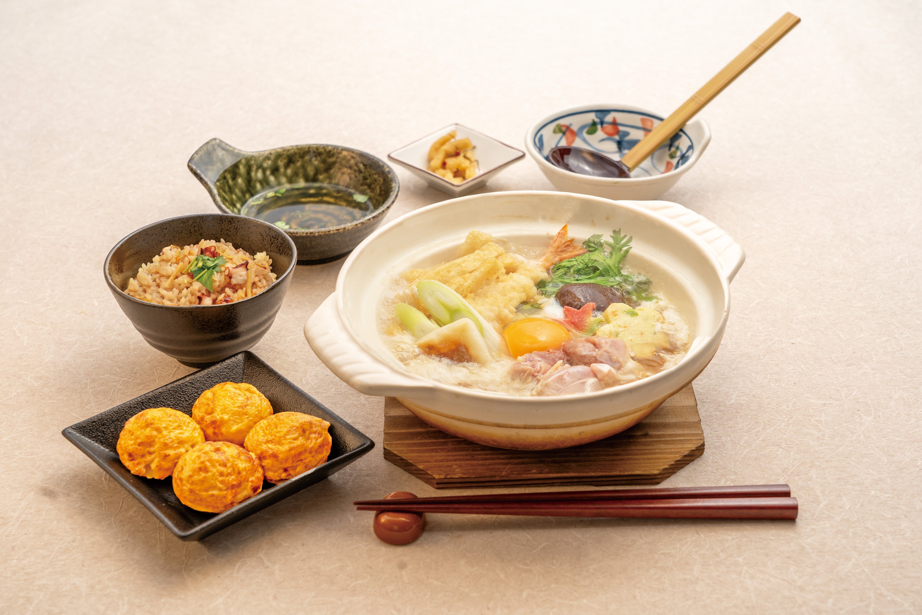 ●玉子焼と華味鳥の鍋焼きうどんセット 1,890円(税込み2,079円)
