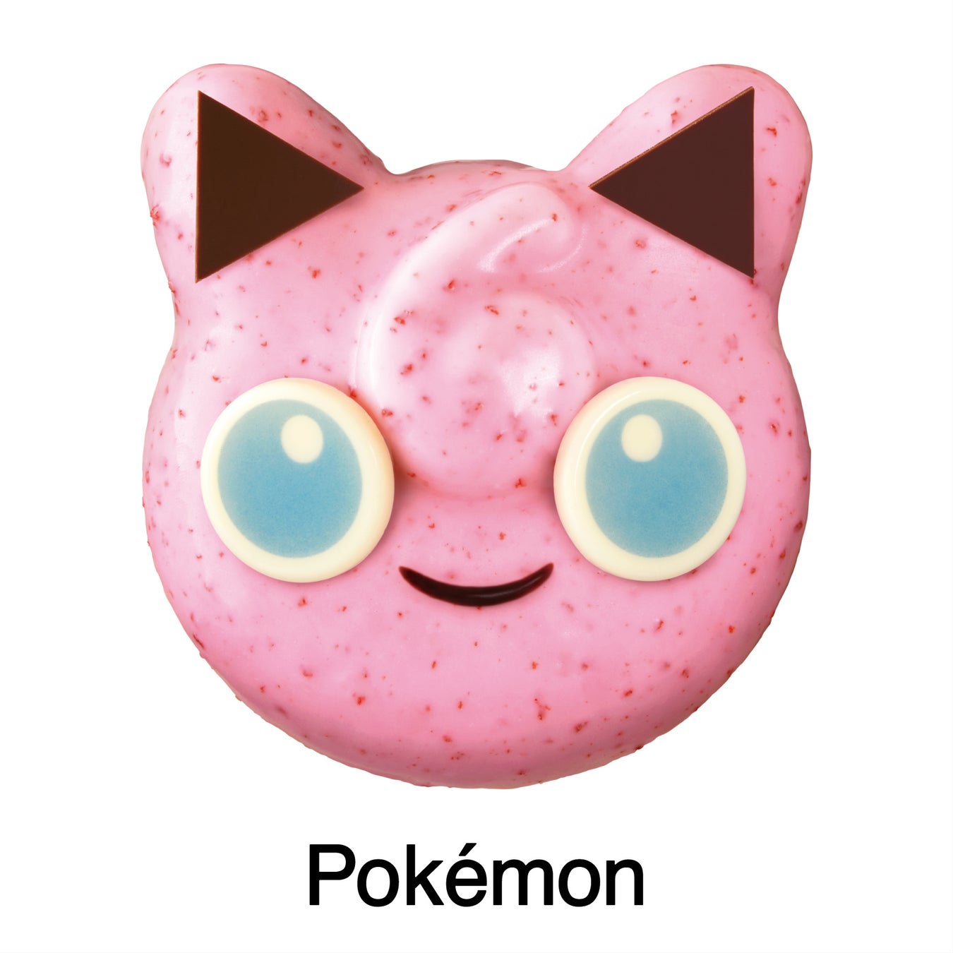 この度、新たにドーナツとなって登場するのは‟ここちよい歌をうたうポケモン「プリン」“です。ふんわりとしたイースト生地になめらなホイップクリームをイン。プリンの特長であるかわいらしい前髪はホイップクリームで表現しています。また、チャームポイントである水色の大きな目や、三角形の耳はチョコレートをオン。ミスタードーナツで人気のあるストロベリーチョコでコーティングし、今にも、歌をうたってくれそうなプリンを表現しています。
