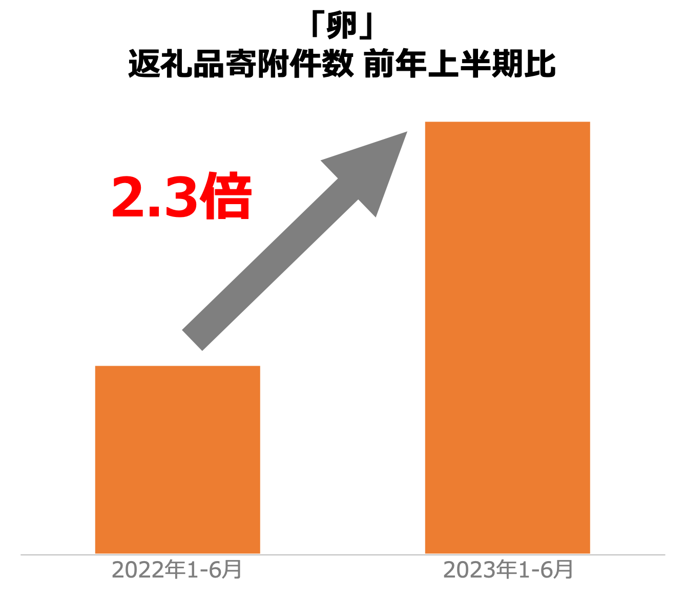 - 価格の高騰が目立った「卵」の寄附件数は前年上半期の2.3倍に。