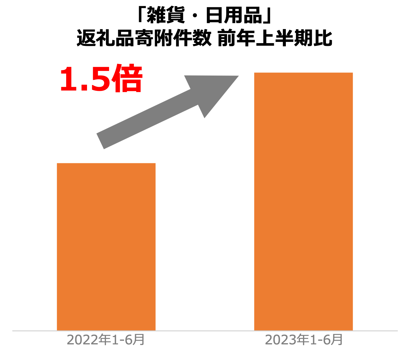 - “トイレットペーパー” などを含むカテゴリー「雑貨・日用品」の寄附件数は、前年上半期の1.5倍に。中でも ‘防災グッズ’などを含む、「福祉・介助用品」関連への寄附件数は前年上半期の4.5倍に!