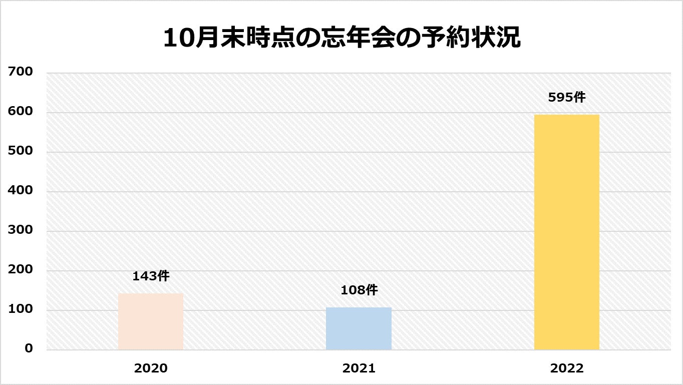 2022年の忘年会の参加意向は昨年と比べて21%アップ 忘年会予約状況は昨対比 約5倍の復調の兆し