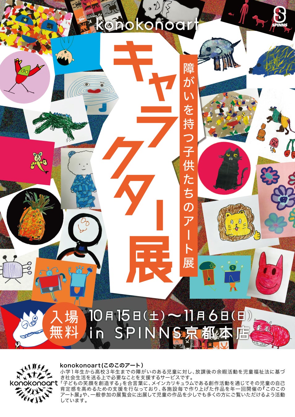 またSPINNS京都店では、販売と同時にこのこのアート児童たちが描いたキャラクター約100点を展示いたします。