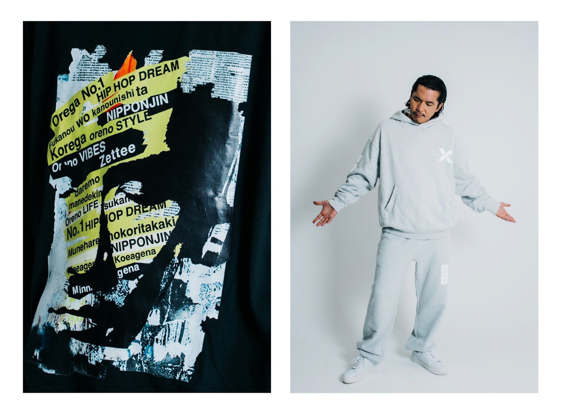 音楽、カルチャー、ストリートからインスピレーションをベースに、現代的なアプローチで服作りを進める「PLUS MEN」。今回のコラボレーションでは製作段階からZeebra氏とタッグを組み、フライトジャケットやパーカー、カットソー等全7型のカプセルコレクションを完成させました。Zeebra氏自らがデザインした「韻」をモチーフにしたグラフィックや、自身の顔をコラージュしたアートワークを随所に散りばめ、往年のファンから若い世代まで幅広い層に届くコレクションに仕上げました。