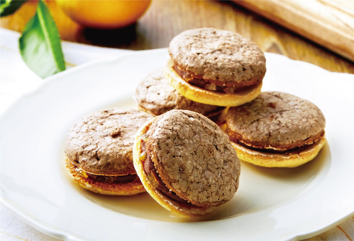 レモン生地と、ショコラ生地。ふわっと軽いパフのような2色の生地で、はちみつが香るショコラクリームをサンド。ほのかにレモンピールのアクセント。濃厚なショコラとやさしい甘さのはちみつが、甘酸っぱいレモンと出会って生まれたおいしさです。定番のふわふわレモンクリームサンドとのアソートセットもご用意しております。