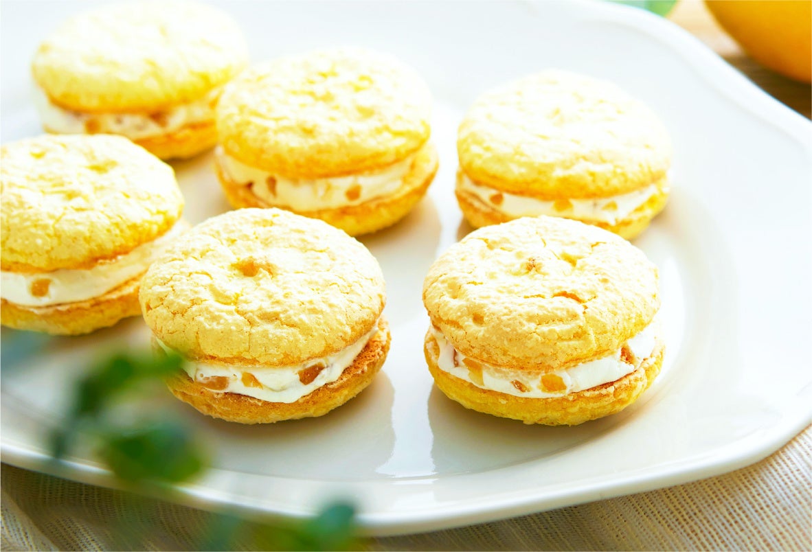 ふわっと軽いパフのようなレモン生地と、なめらかで甘酸っぱいレモンクリーム、おまけにほろ苦いレモンピールのアクセント。見た目はマカロンみたいにかわいくて、でも、食感はふわふわで甘酸っぱい。レモンの香りと、口の中でやさしくとけあう心地よい食感にこだわった、さわやかなクリームサンドです。東京レモンチェの自信作、ぜひご賞味ください。