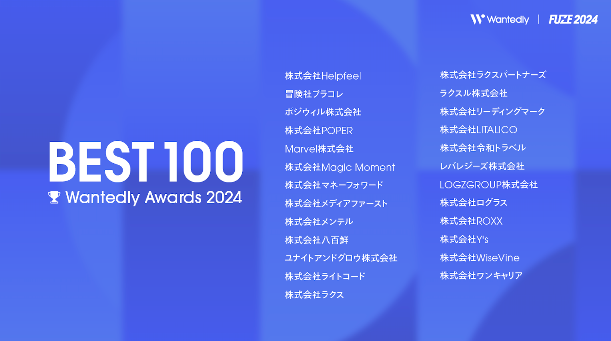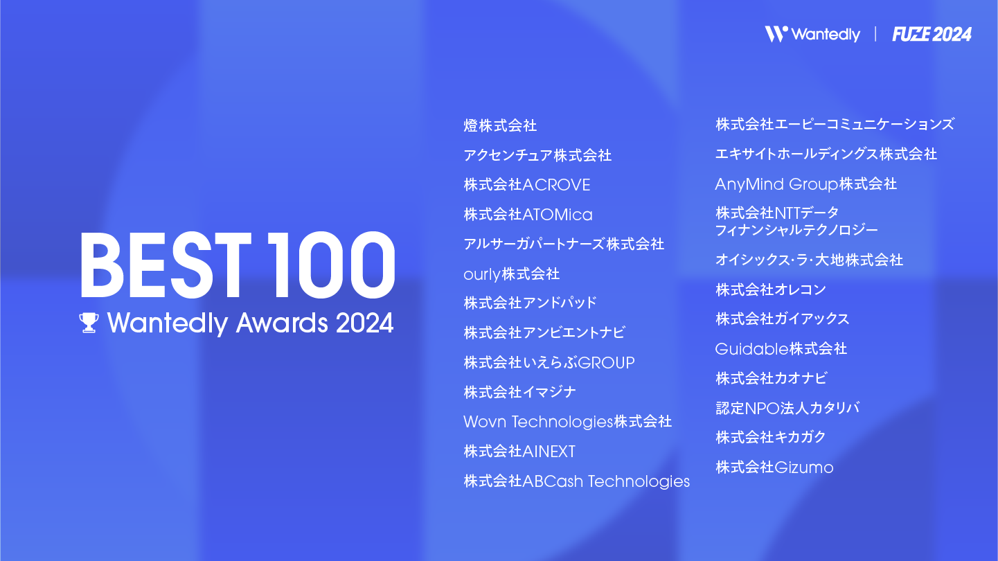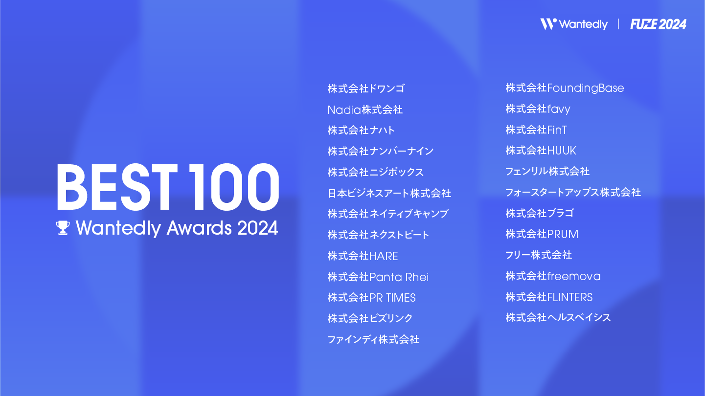 Wantedly Awards 2024 「BEST 100」:https://fuze.wantedly.com/