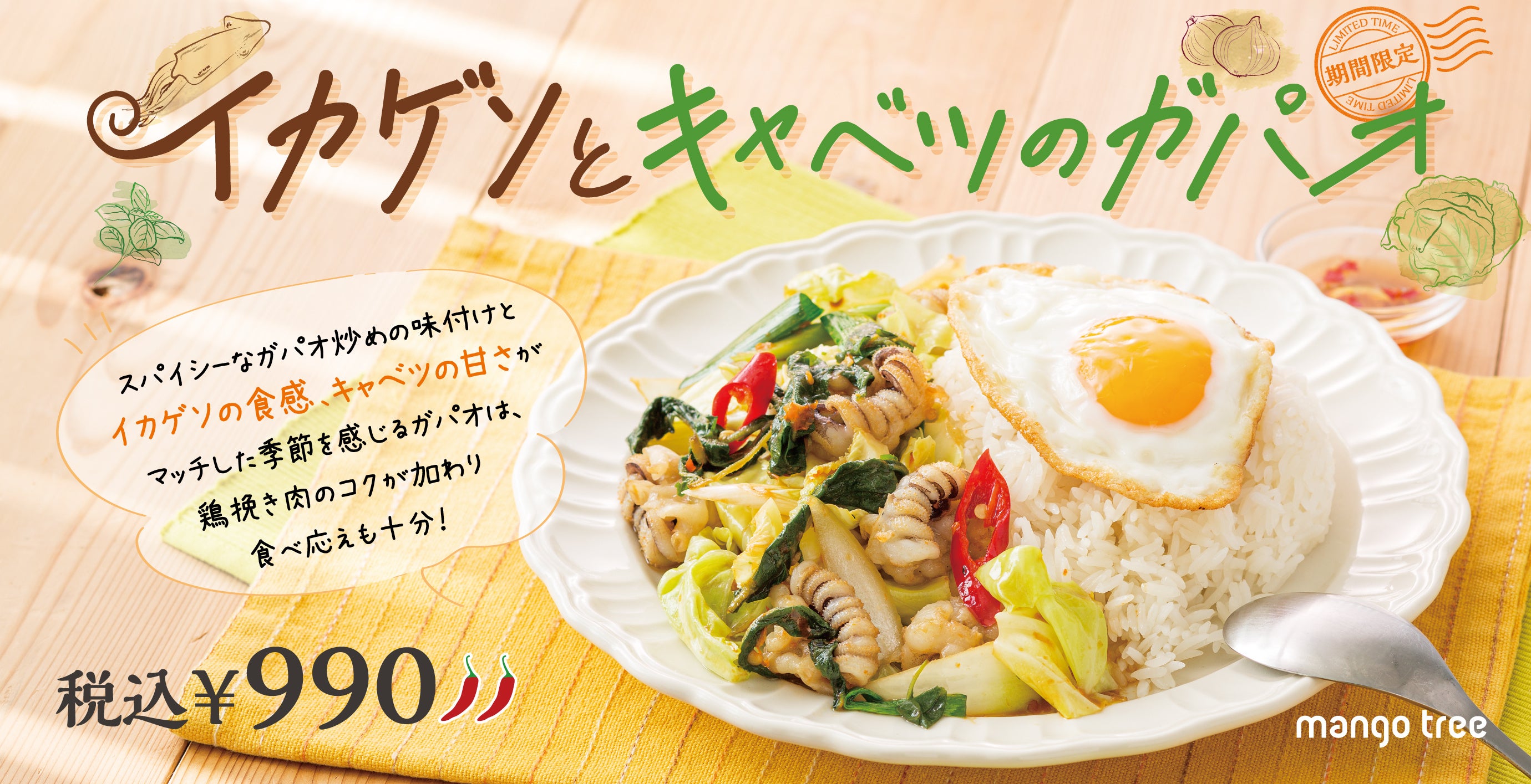 【人気の“ガパオ”に期間限定の味が仲間入り】 「イカゲソとキャベツのガパオ」マンゴツリーキッチンで3月1日(水)より期間限定販売