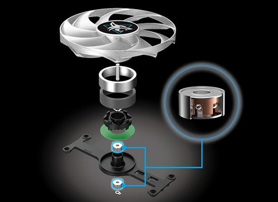 耐久性の高い日本メーカー製のダブルボールベアリングで、前世代よりも冷却性能を高めたファンを3基搭載した高冷却空冷システムを採用。