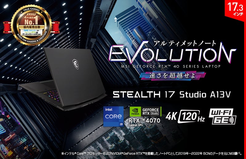 4KディスプレイとRTX 4070搭載 「NVIDIA Studio」認証モデル クリエイティブゲーミングノートPC「Stealth 17 Studio A13V」発売