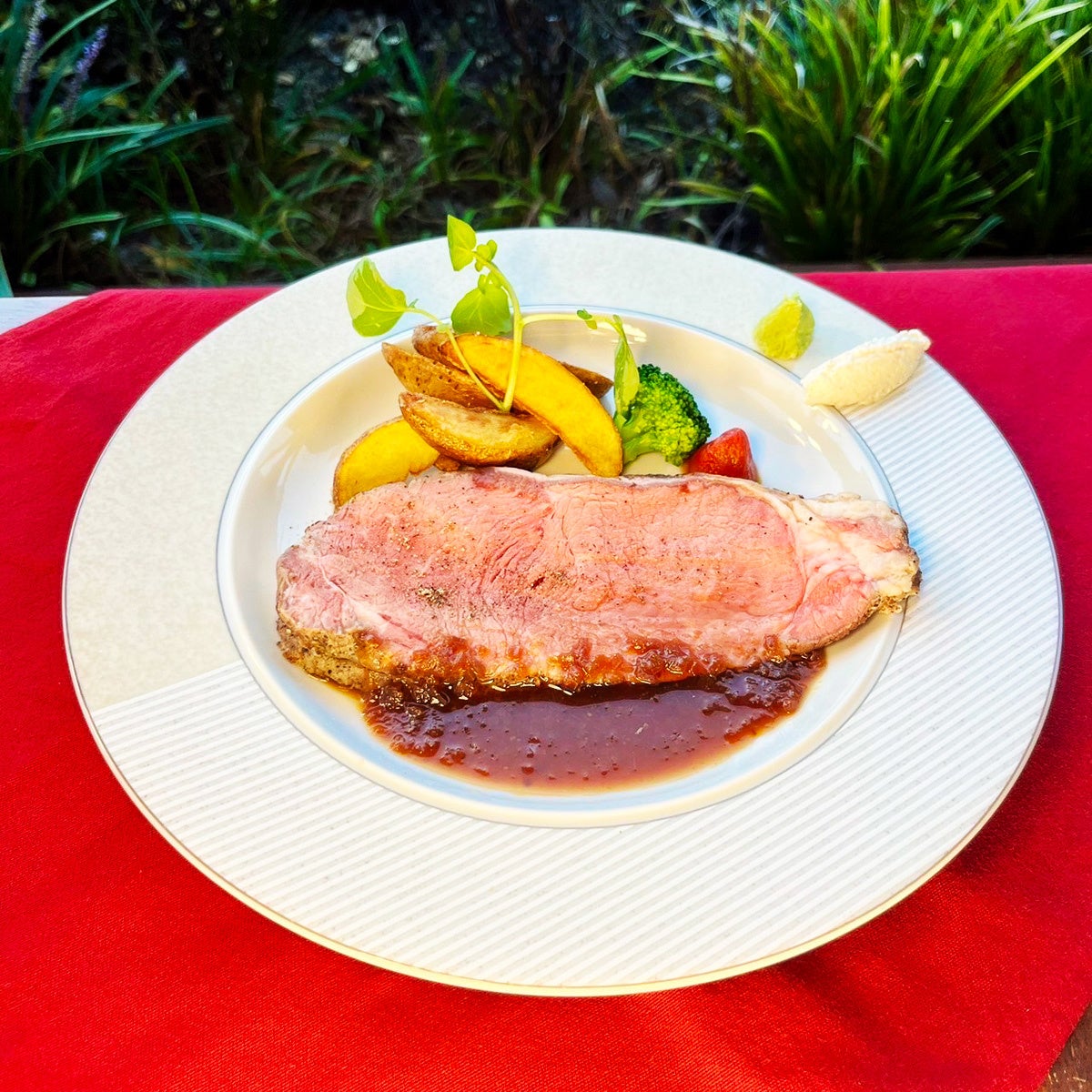 メイン料理であるローストビーフはお野菜と香草で2日間マリネしローストして豪快に見た目も華やかに御提供します!早期予約特典のトリュフを添えれば、より気分も高まること間違いなしです♪