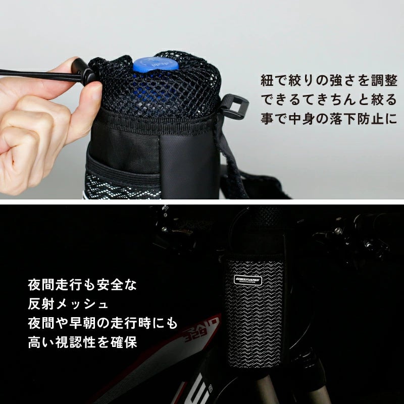 ドローコード付きでしっかり固定できるので、走行中も安心です。