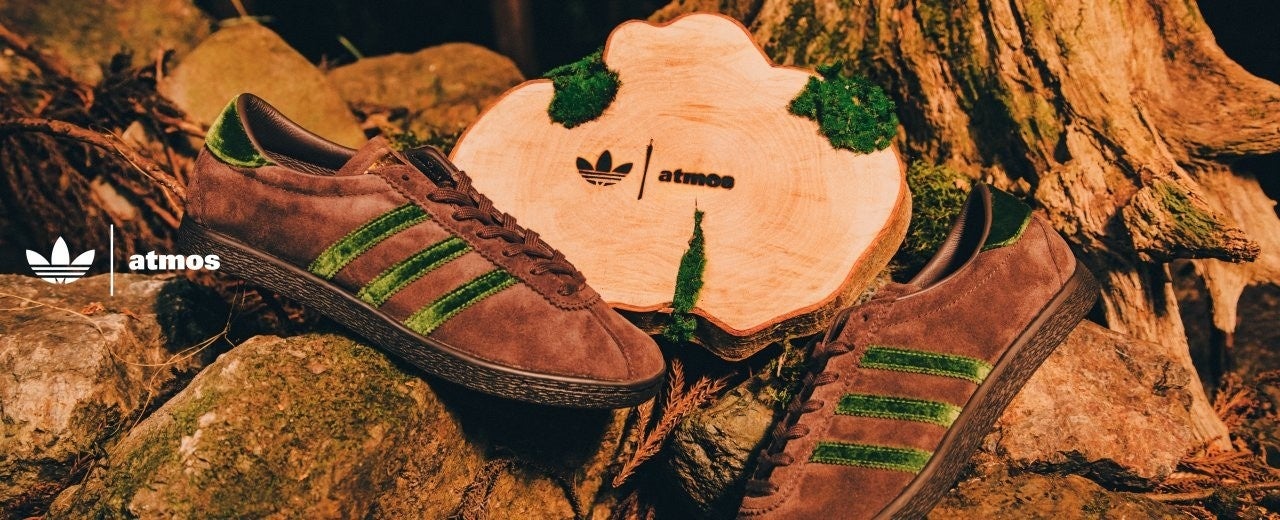 ロングセラーを誇るadidas Originalsの定番モデル”TOBACCO”に樹齢1000年を越える世界自然遺産『屋久杉』と『年輪』のエレメントを注ぎ込んだ「atmos」コラボレーションが登場